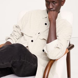 We fell hard for this unusual corduroy fabric—we love how the diamond pattern looks like quilting—cut in an oversized silhouette so it’s easy to layer.
