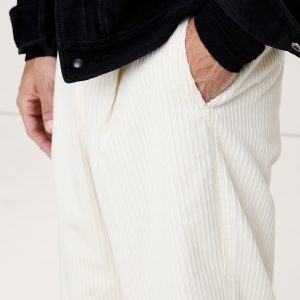 Inspired by a vintage pair of officer’s chinos, this straight-leg pant is cut with a slightly higher rise and an inseam length that stacks nicely at the hem. For fabric, we selected a soft, cotton corduroy with a mix of skinny and wide wales for a retro feel.