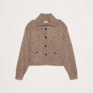 A classic cardigan sweater with a utility twist, we knitted this one from a soft and warm blend of cashmere and Merino wool with shoulder epaulets as a nod to our heritage.