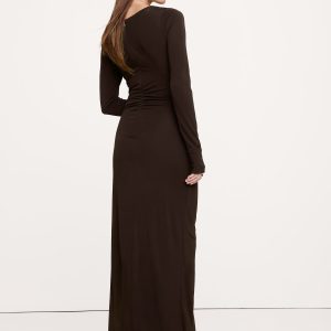 Quite the gathering. This figure-hugging maxi dress is cut from our best-selling matte jersey knit (so it’s t-shirt soft and looks fab), here with ruching at the sides and a slash neckline.