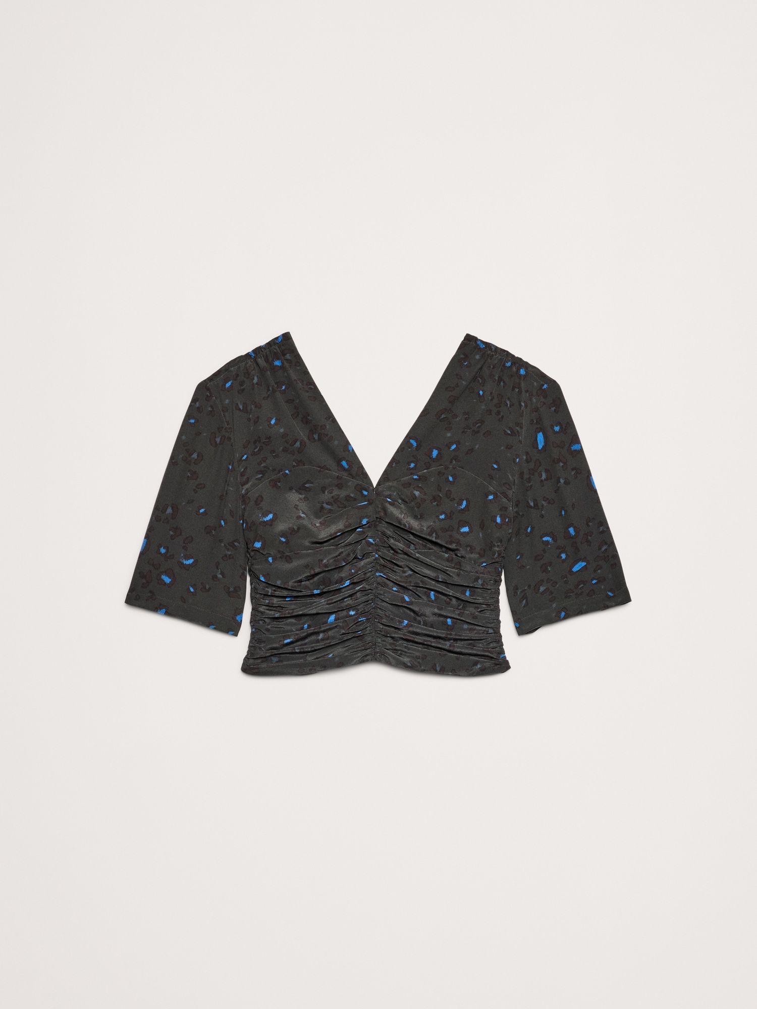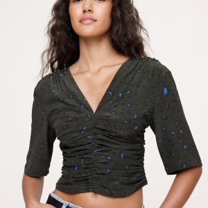 A cute cropped top with a ruched front, cut from our signature silk de chineDid we mention it’s machine washable?