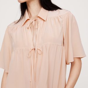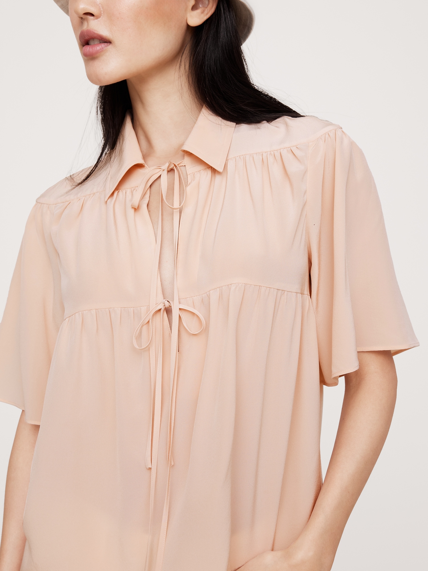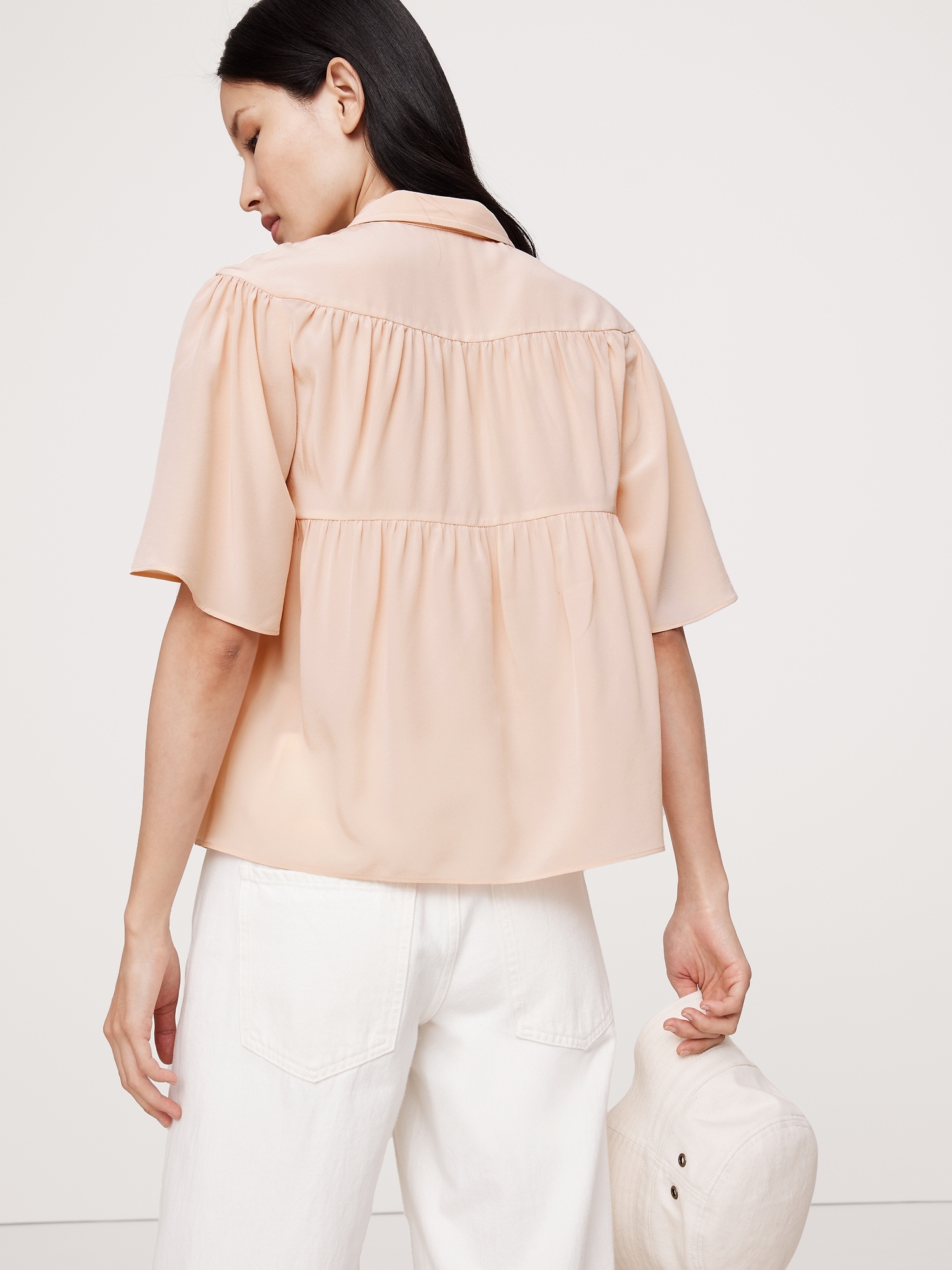 Cut from our signature silk de chinethis tie-front top feels effortless but looks more dressed-up thanks to its tiered construction. Did we mention it’s also machine washable?