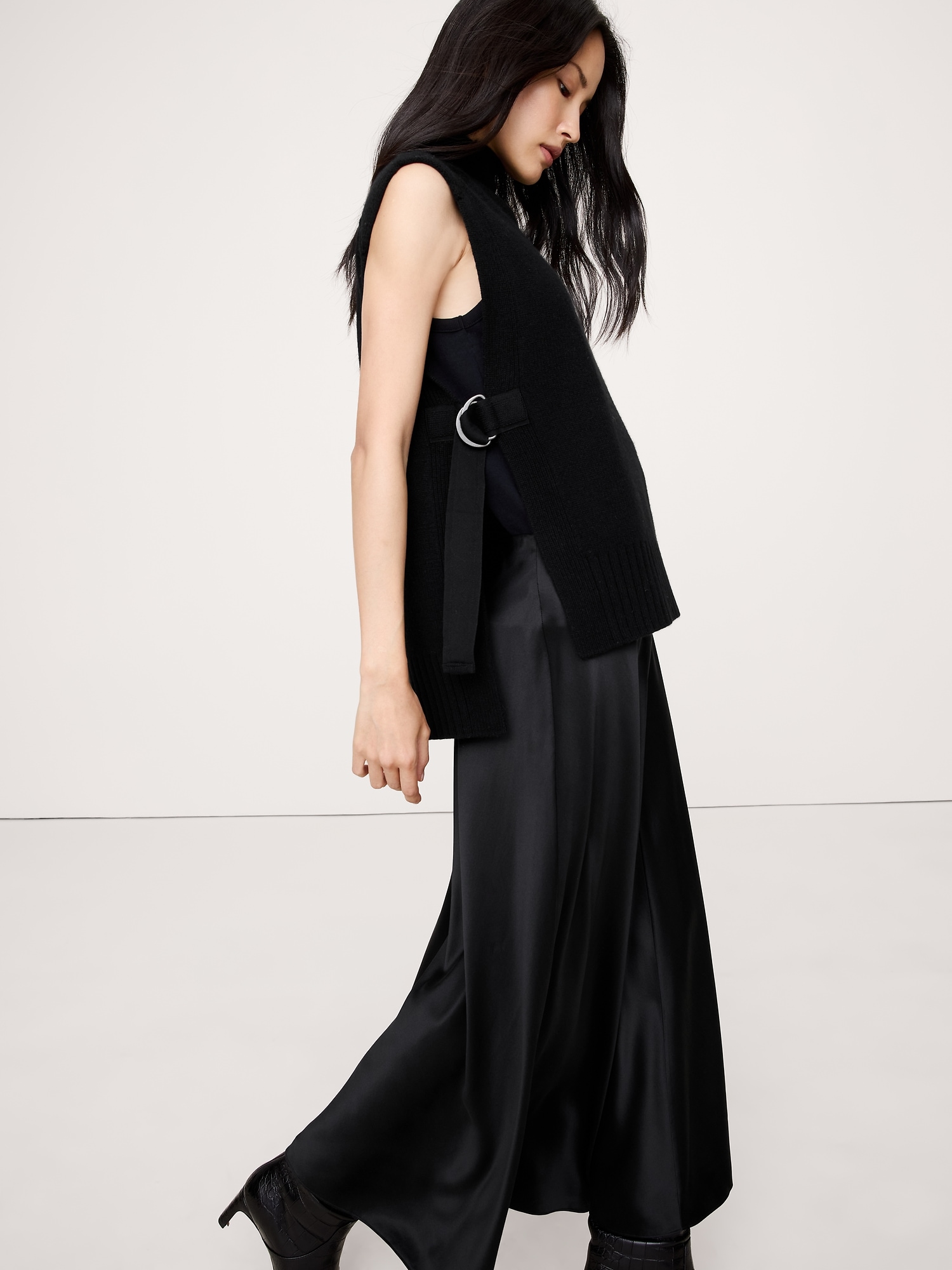 A layer to carry you through cooler seasons to come, we designed this cute sweater vest with open sides as an invitation to play with proportions Crafted in a warm and luxuriously soft blend of Merino wool and cashmere.