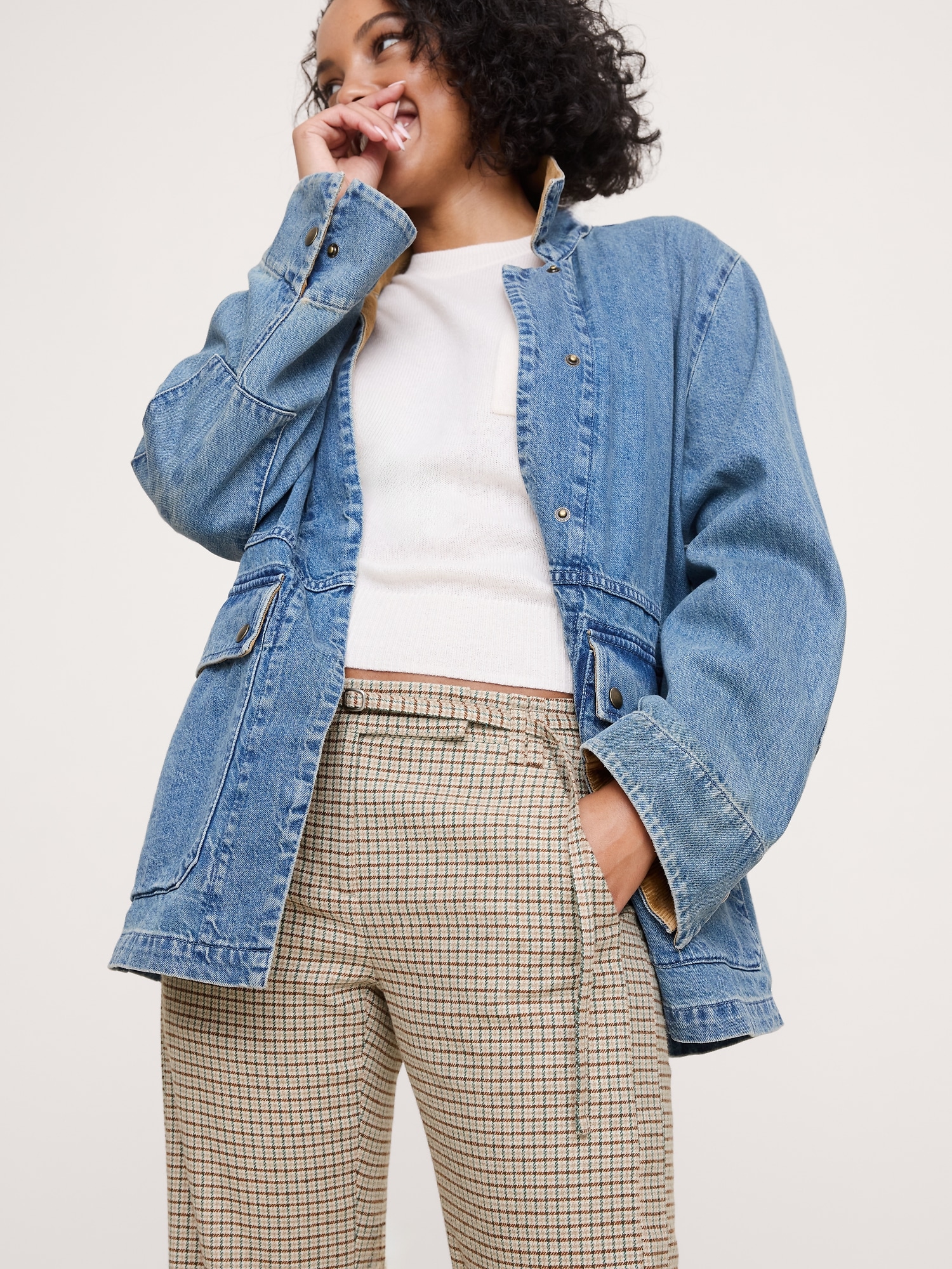 The pant we’ve been dreaming of. This one brings the 2000s vibes with a mid-rise bootcut silhouette and a belted waist. Cut in an Italian wool-blend flannel fabric we love for its smooth look and comfort stretch.