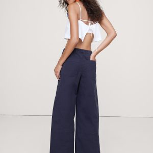 Wide leg fit: Mid-rise with a straight fit through the thigh and wide leg. Full length.