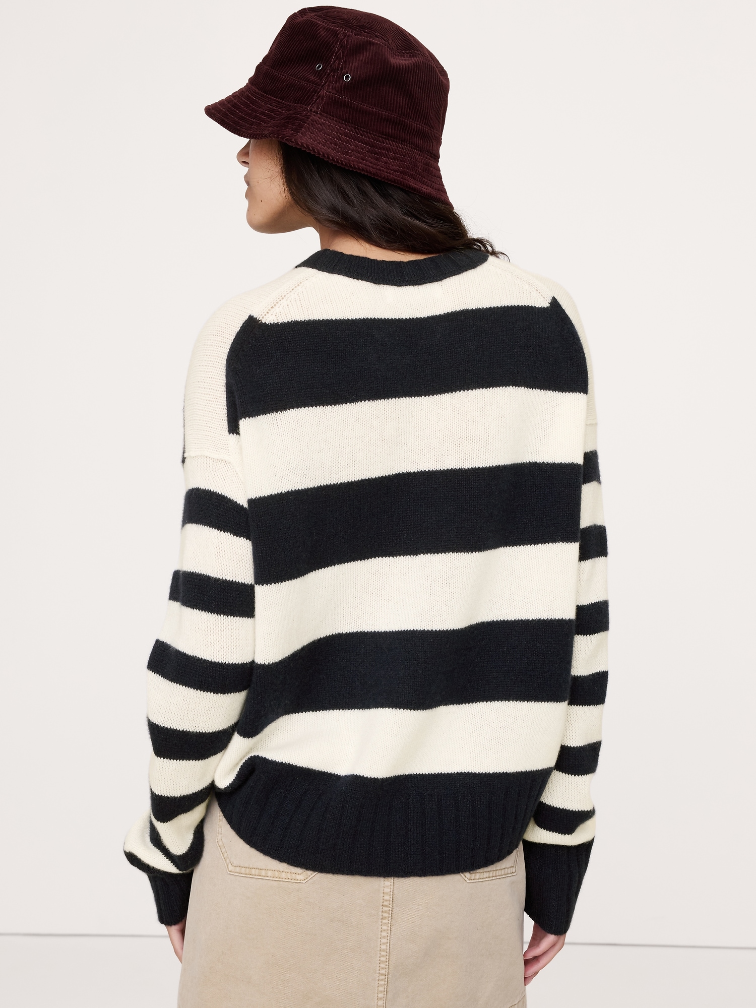 Supremely soft and warm, we chose our midweight cashmere yarn for this sweater so it will carry you through cooler months. Here, we opted for a longer length that hits just below the hips.