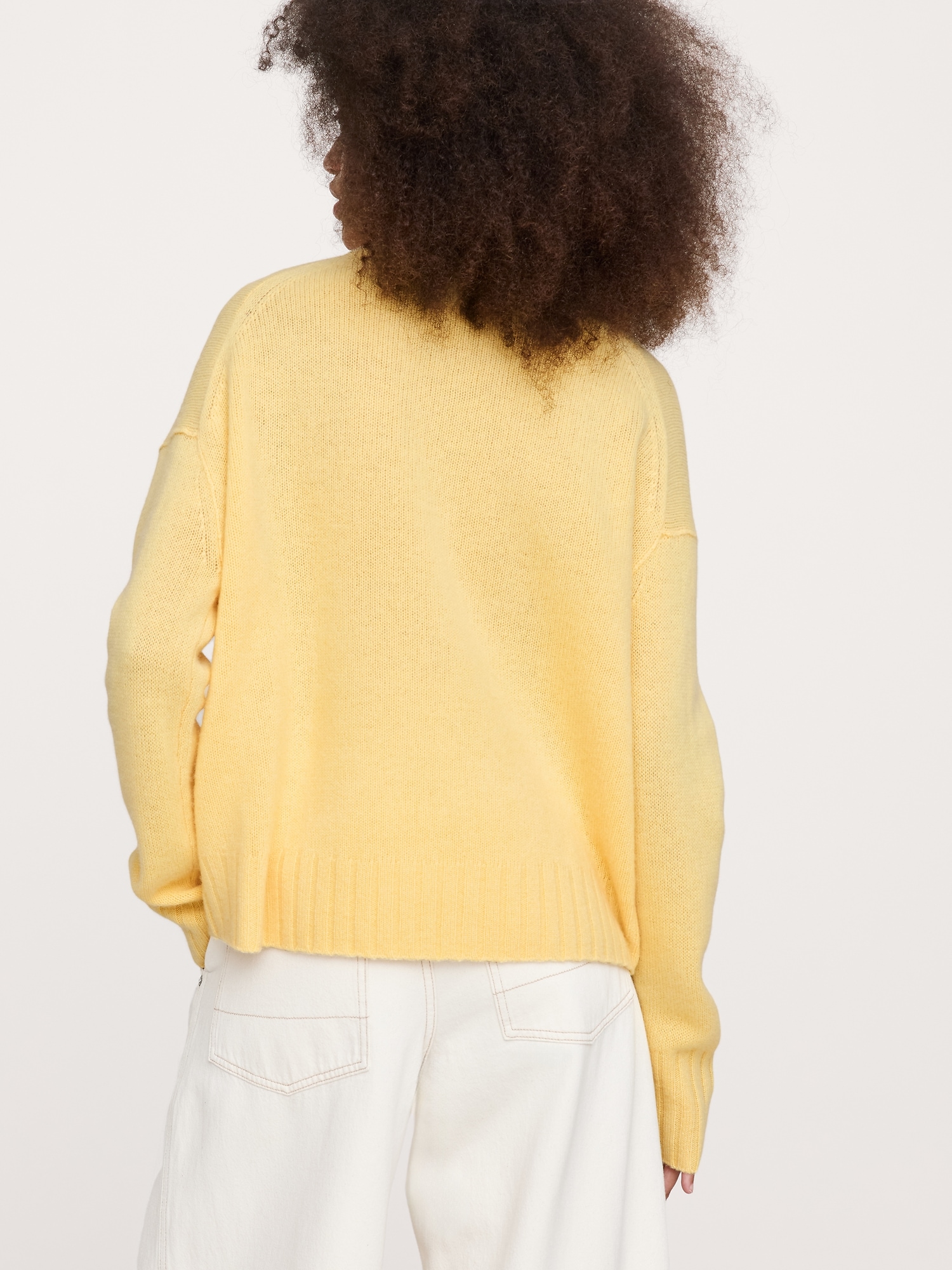 Supremely soft and warm, we chose our midweight cashmere yarn for this sweater so it will carry you through cooler months. Here, we opted for a longer length that hits just below the hips.