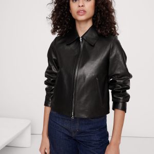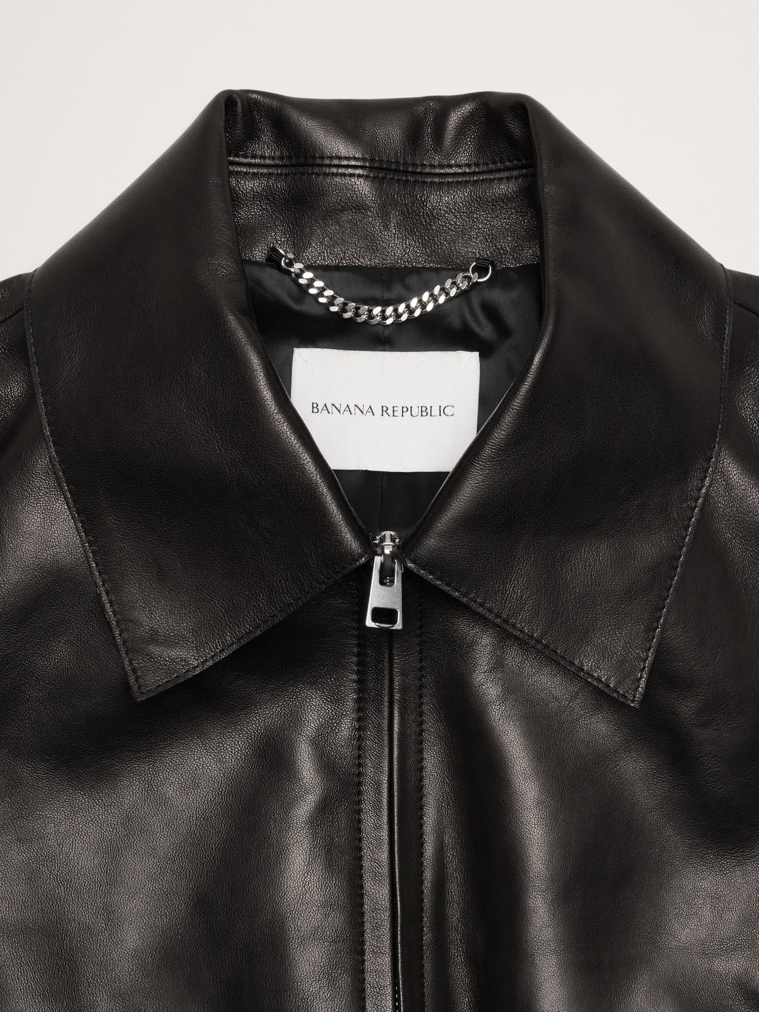 Based on an archival garage jacket from the 1990s, we pared down the details we love most in a leather jacket to keep the vibe streamlined: a pointed collar, zip front, and secure, zippered pockets. We updated the fit to feel ever-so-slightly shrunken so it feels fresh and to show off the beautiful and soft lambskin leather—a material we love because it only gets better with time.
