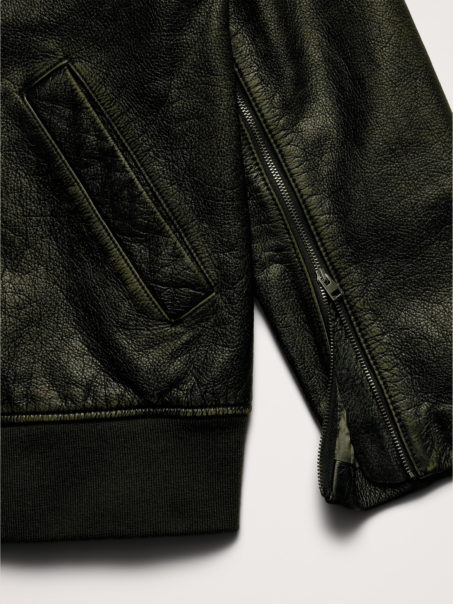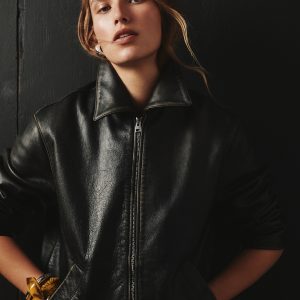 We looked to the archives to style this luxurious leather jacket. The style itself is classic and the silhouette is ever-so-oversized because the distressed leather here is special enough.