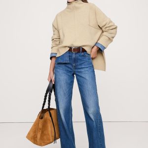 Oversized Merino-Cotton High-Low Funnel-Neck Sweater
