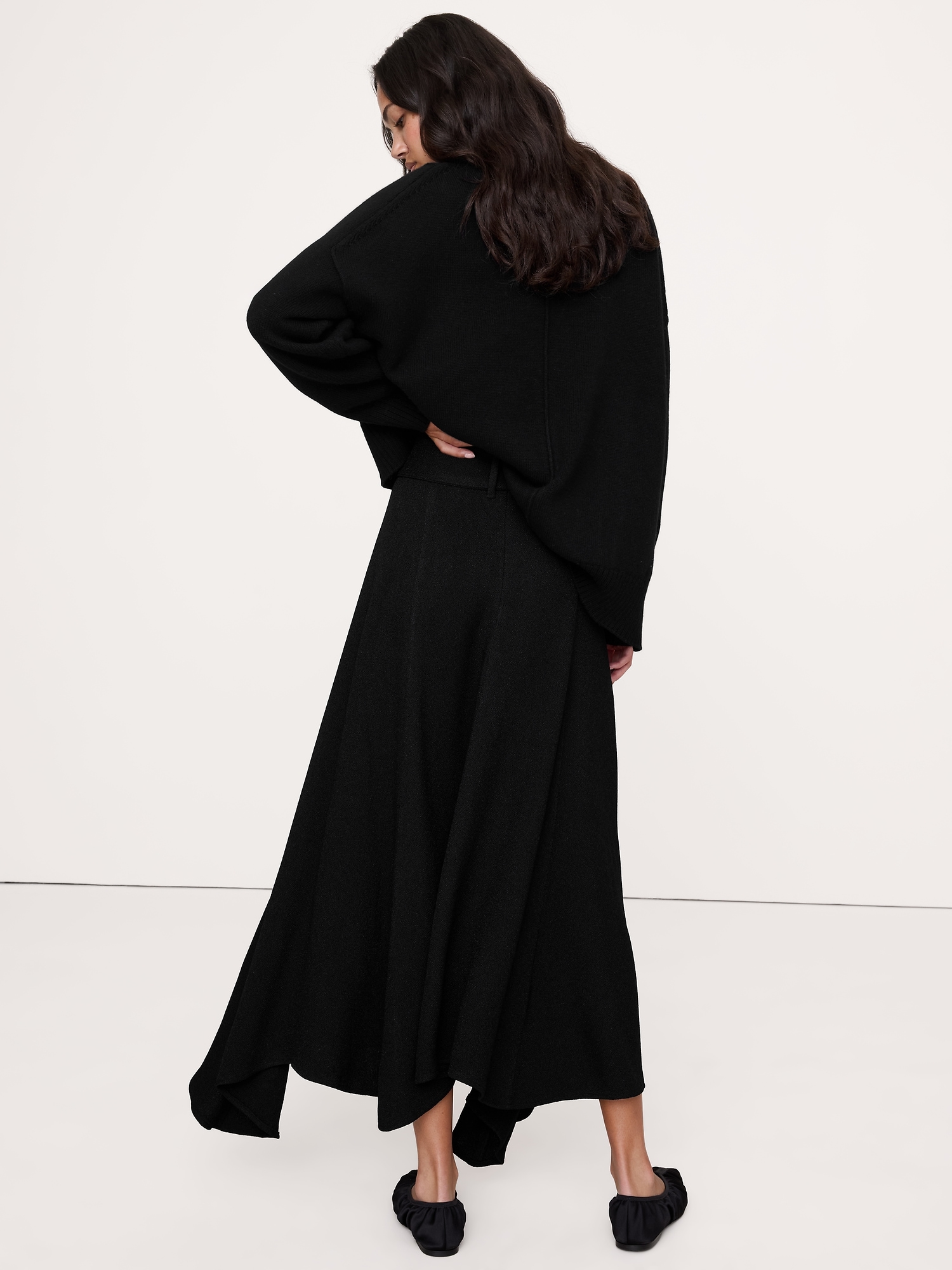 One of our favorite skirts to style this season. We love the handkerchief hem, adjustable slider belt, and the luxe, crepe fabric (it has a pebbled texture so it hangs beautifully).