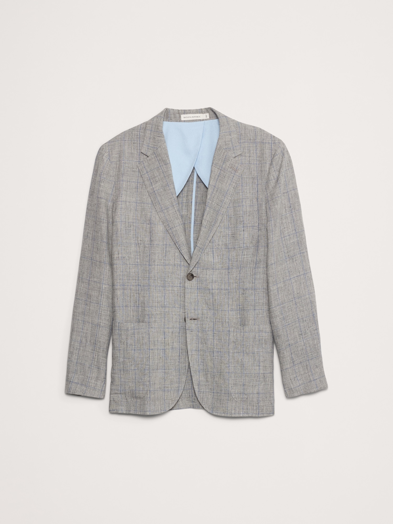 We cut this suit jacket with warm weather in mind, picking a beautiful, certified-European linen fabric and leaving the back unlined so it stays cool. Look closely: we love this fabric’s subtle blue windowpane pattern.