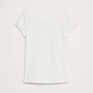 Scoop neck. Cap sleeves.