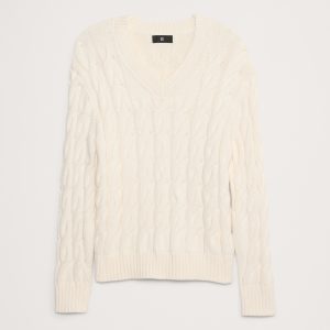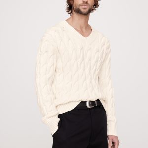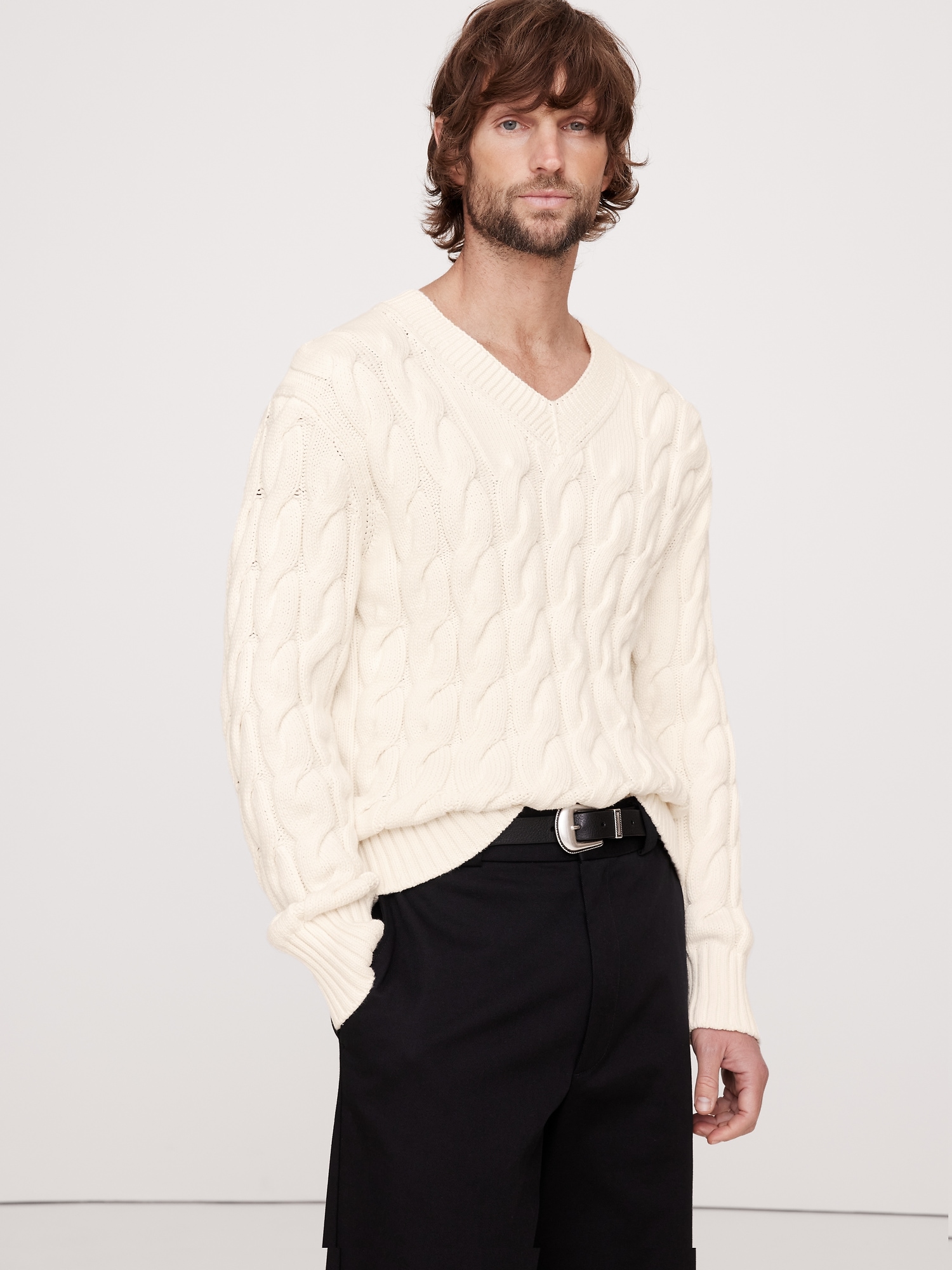 Relaxed Cable-Knit Cotton-Blend V-Neck Sweater