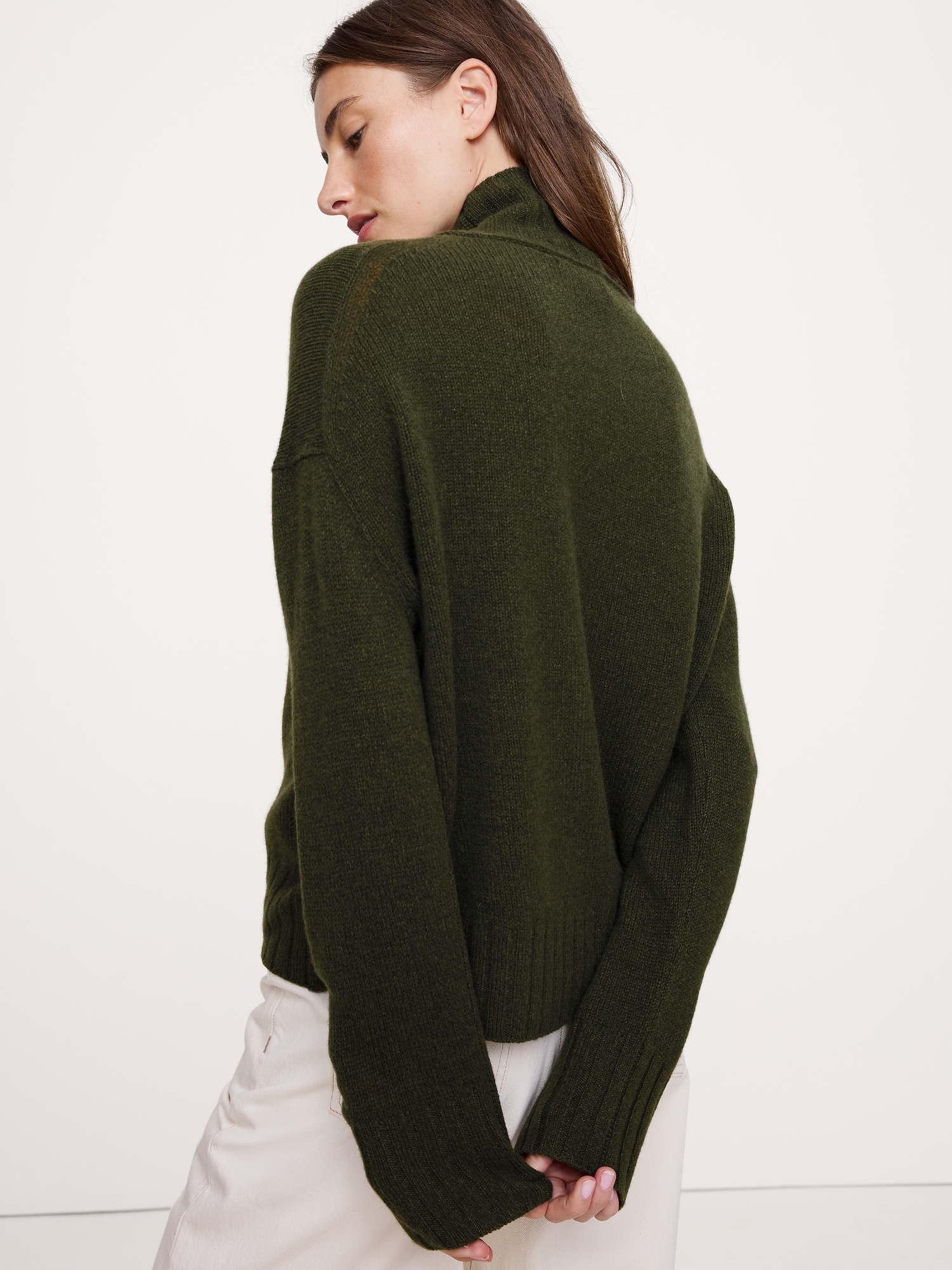 The ideal Big Comfy Cashmere Sweater, we cut this one from our signature cashmere—beloved for its soft texture and midweight warmth. We kept the fit relaxed and added a funnel-neck—similar to a turtleneck, but without the foldover so it’s sleek and easy to layer.