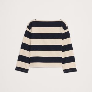 A boatneck t-shirt in a rugged cotton fabric so it’s ideal in cooler seasons.