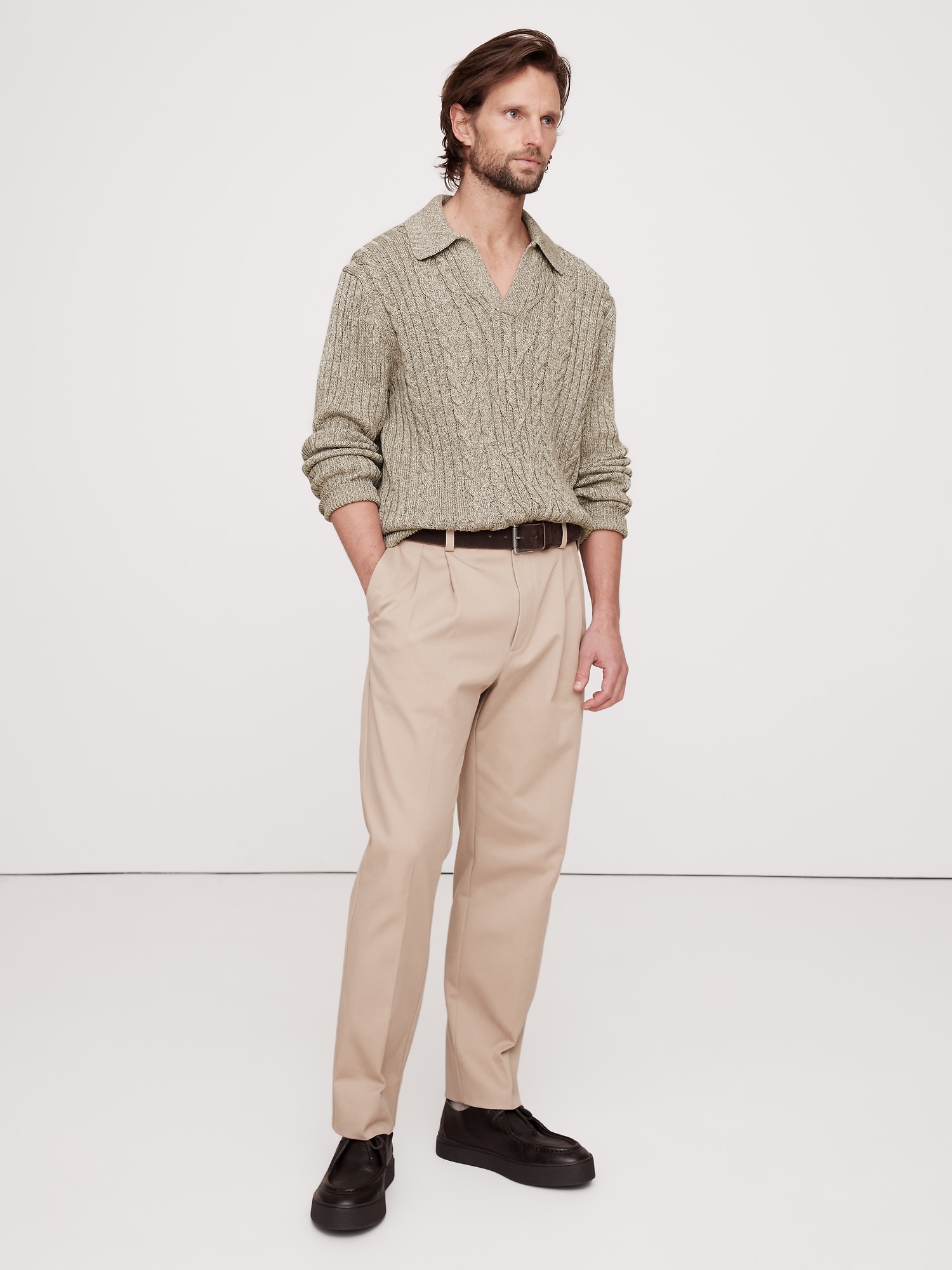 This polo version of your favorite cable-knit sweater is made from soft, 100% organic cotton with a marled effect. We kept the fit relaxed so you can dress it up with pleated chinos or dress it down with sneakers and jeans.