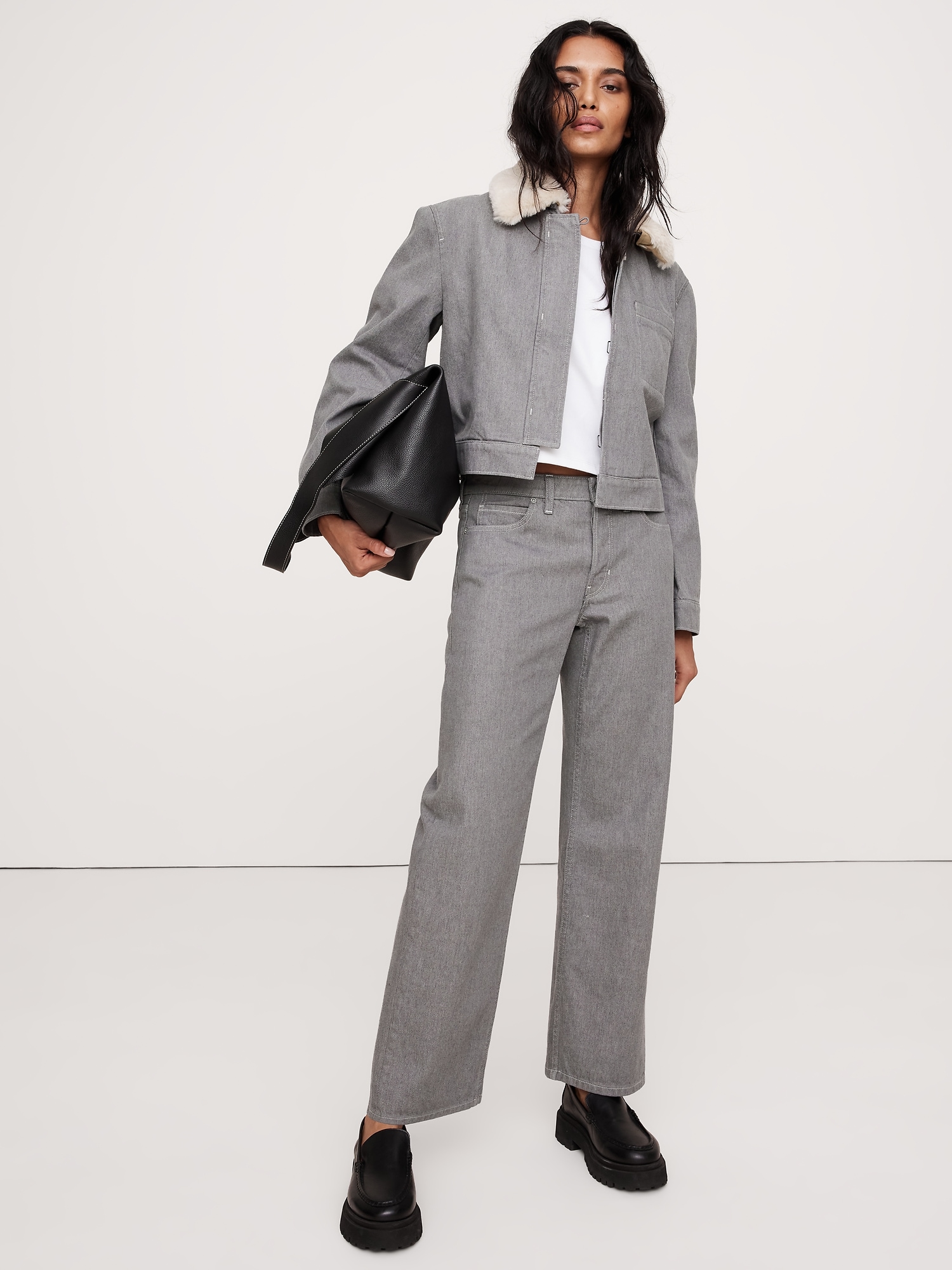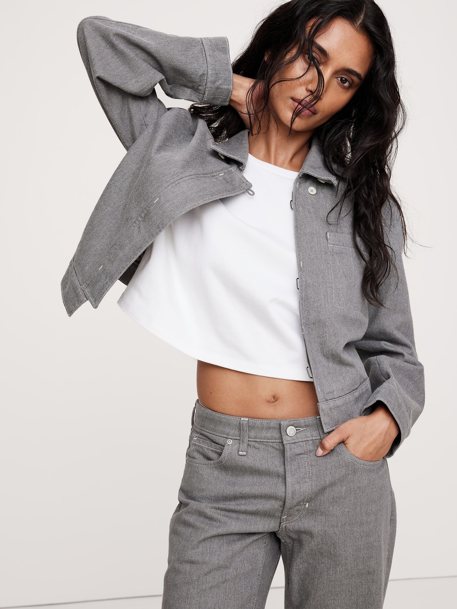 Relaxed: A straight and easy fit. Cropped length.