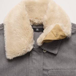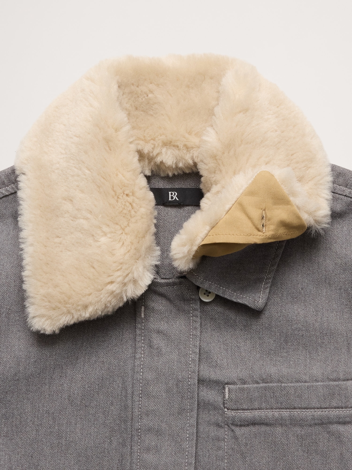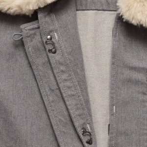 We love the look of old-school chore coats, which is what inspired us here. We updated the look with a removable faux-fur collar and a cropped length for easy layering.