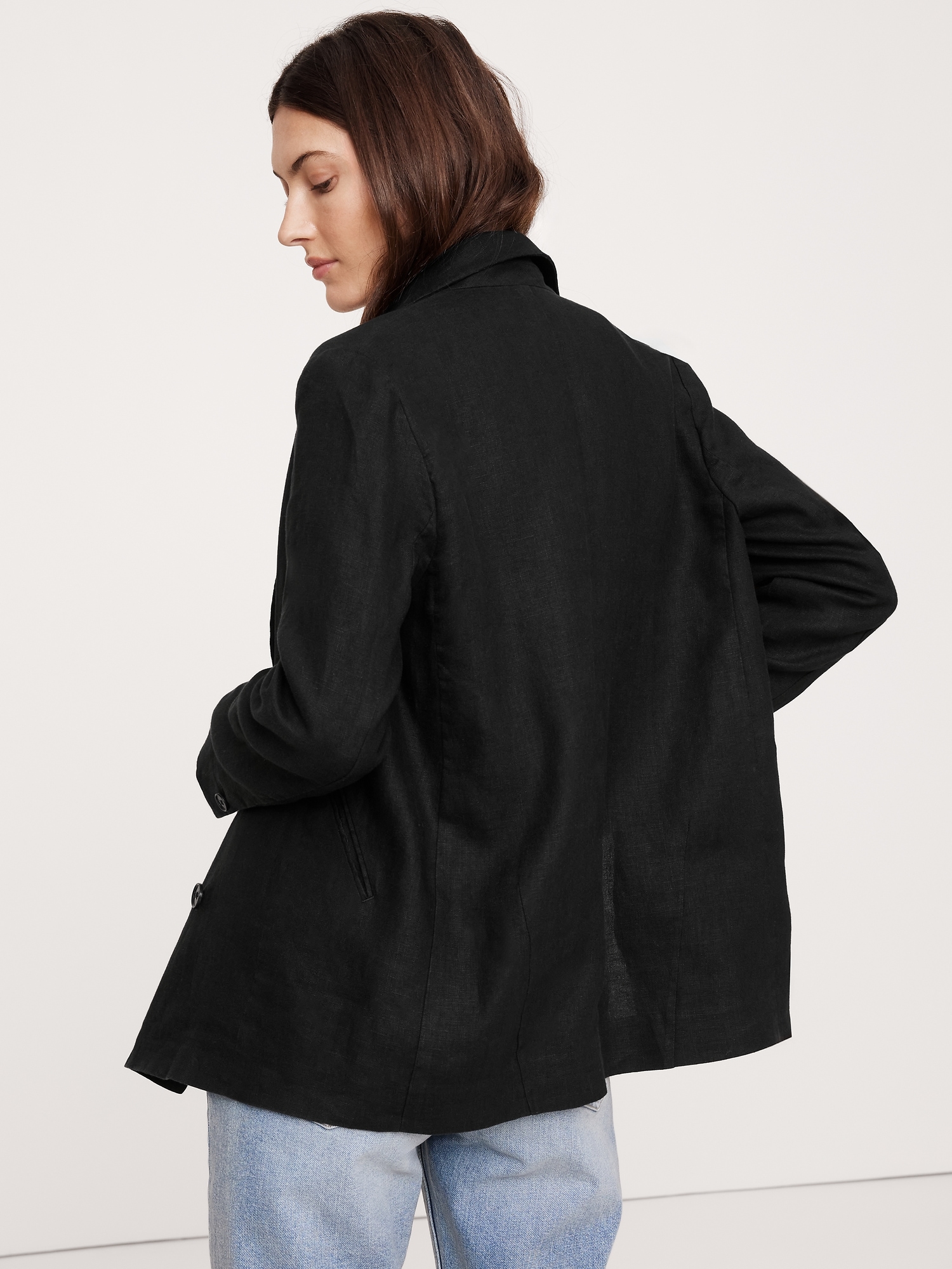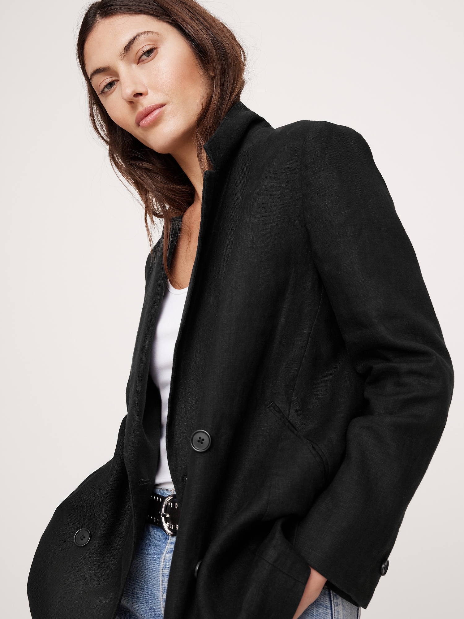 Cut for a relaxed fit, this double-breasted blazer is crafted from linen—an ideal choice for hot, humid weather. Plus, we opted for a butterfly lining at the back to ensure extra breathability.