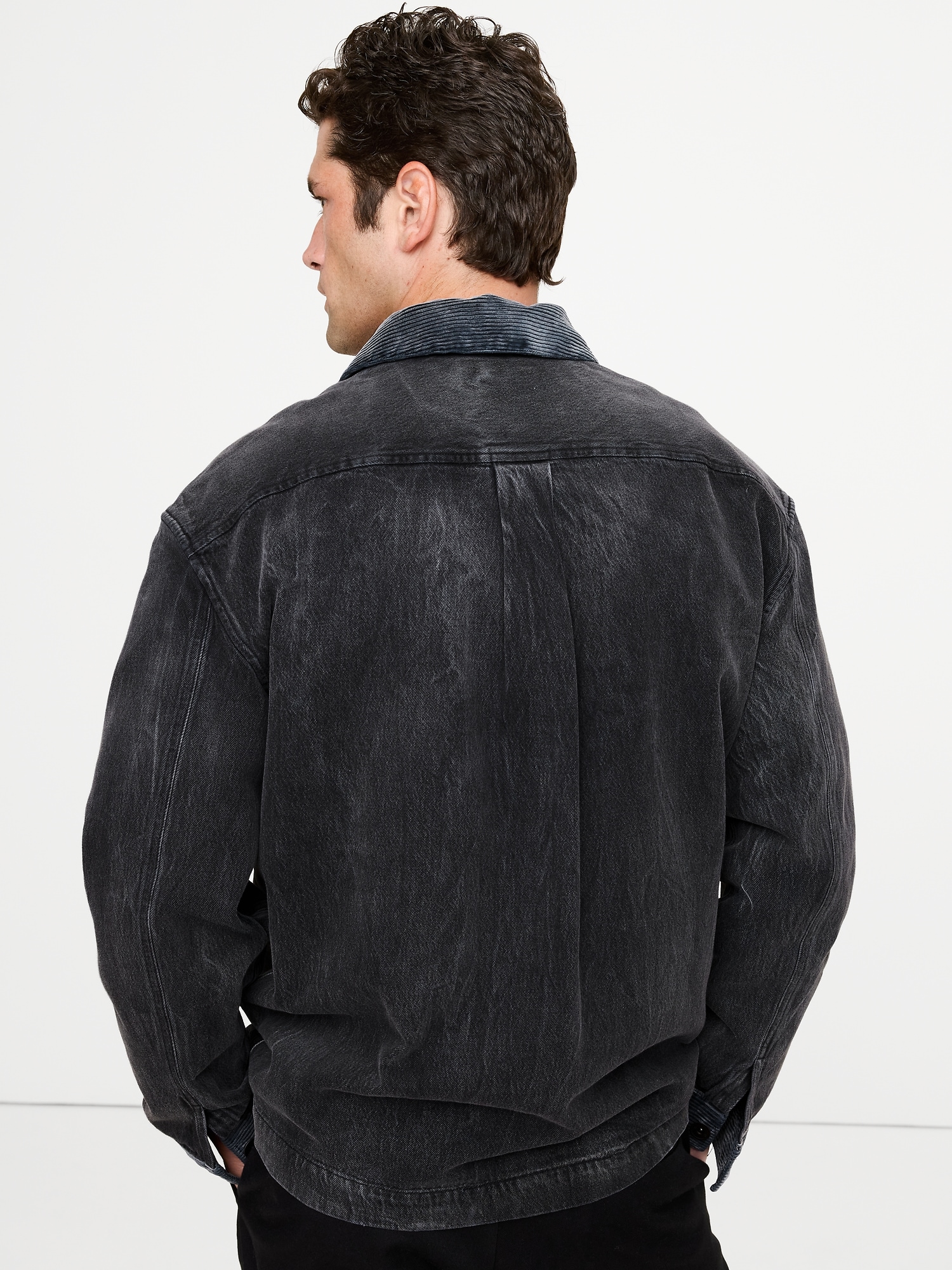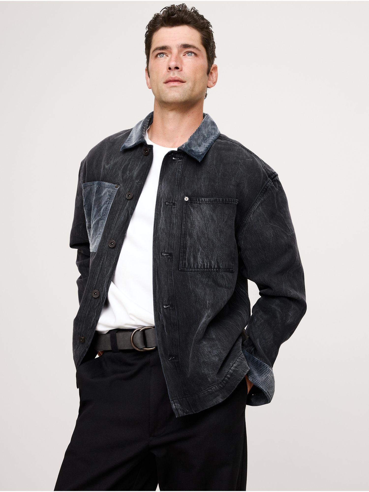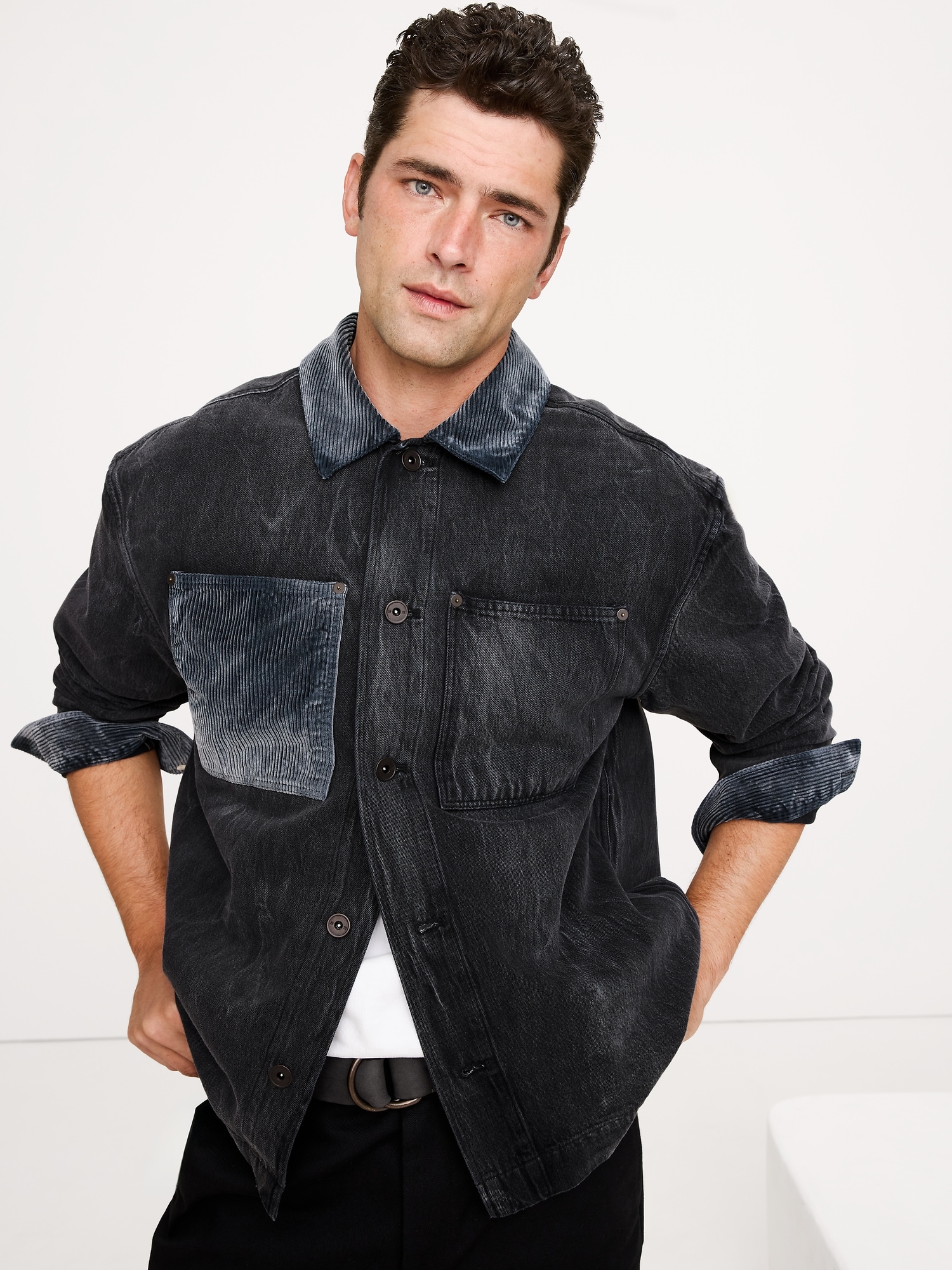 Designed for a lived-in look, this denim shirt is cut from heavy Italian denim, with hidden corduroy accents under the collar and cuffs. Finished with a garment wash for a better-than-vintage look.