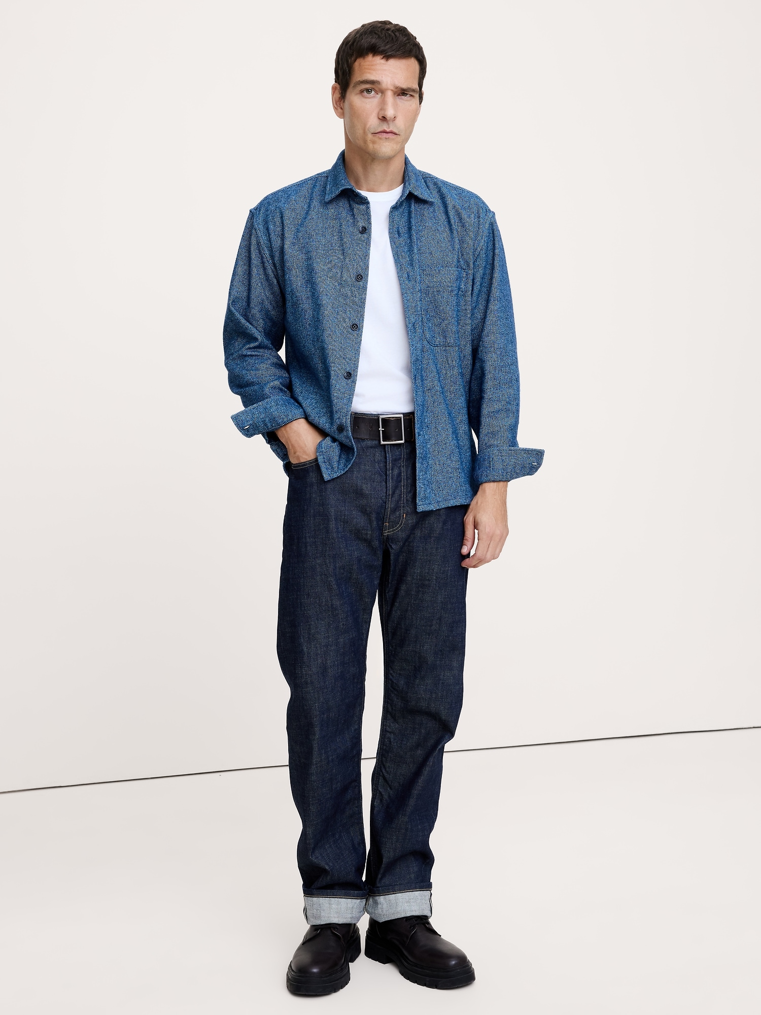 Relaxed Fit: A straight roomy fit with a relaxed sleeve.