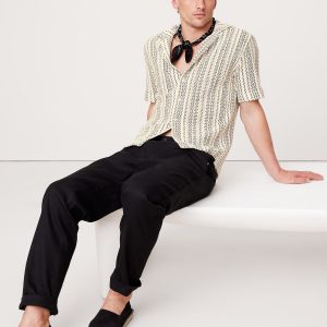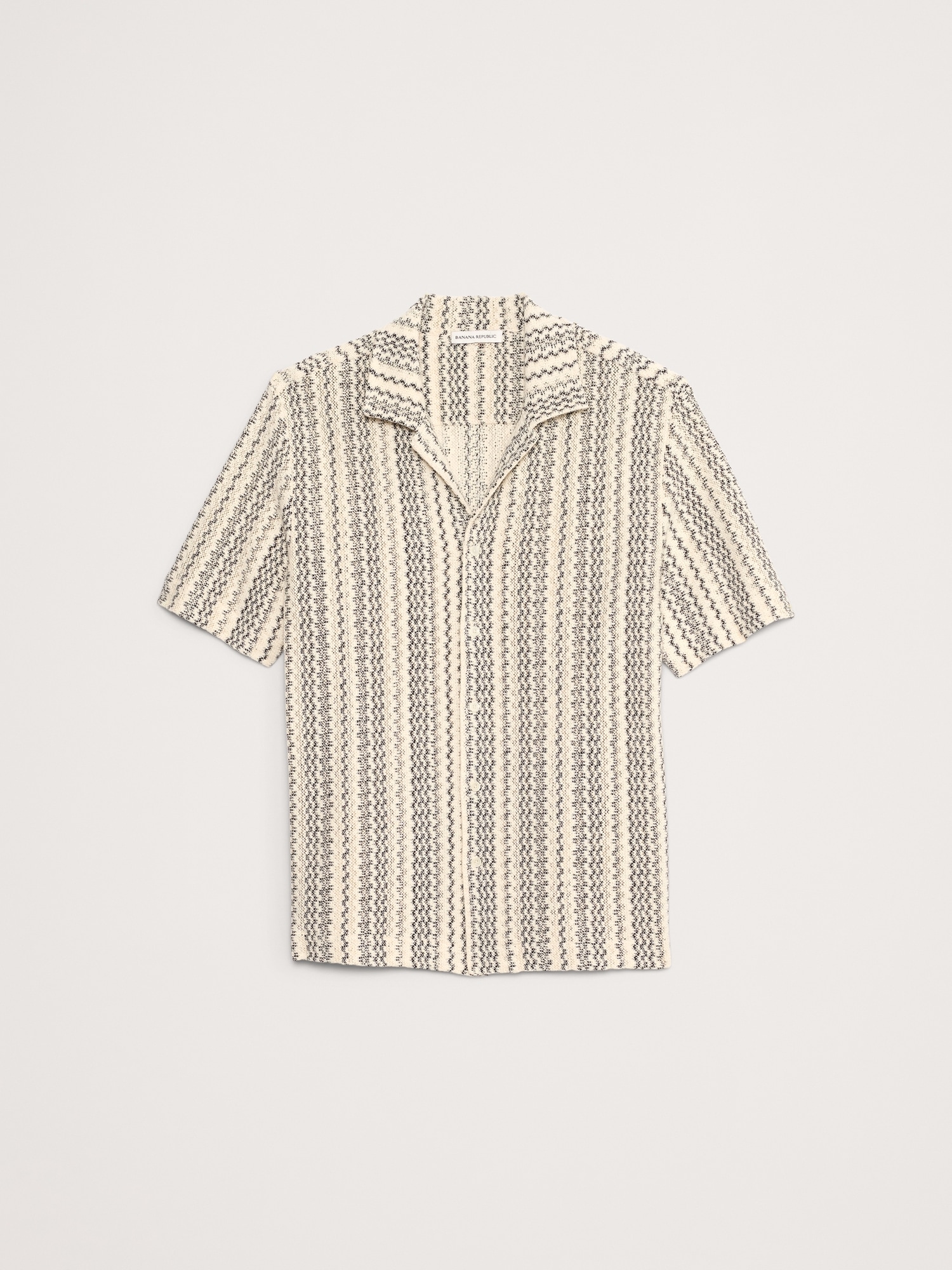 Things we love about this resort shirt: the wavy pattern, artisanal texture, and the retro silhouette. Pro tip: looks great poolside.