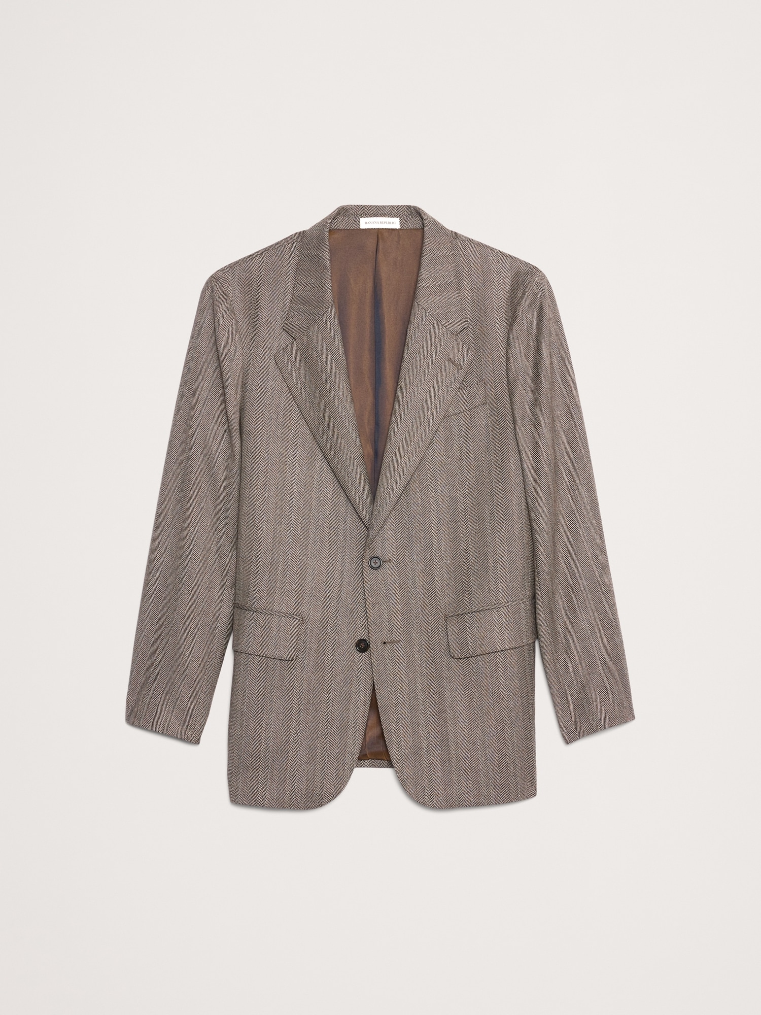 Designed with cooler climates in mind, this sleek suit jacket is cut from an Italian herringbone fabric woven from 100% wool.