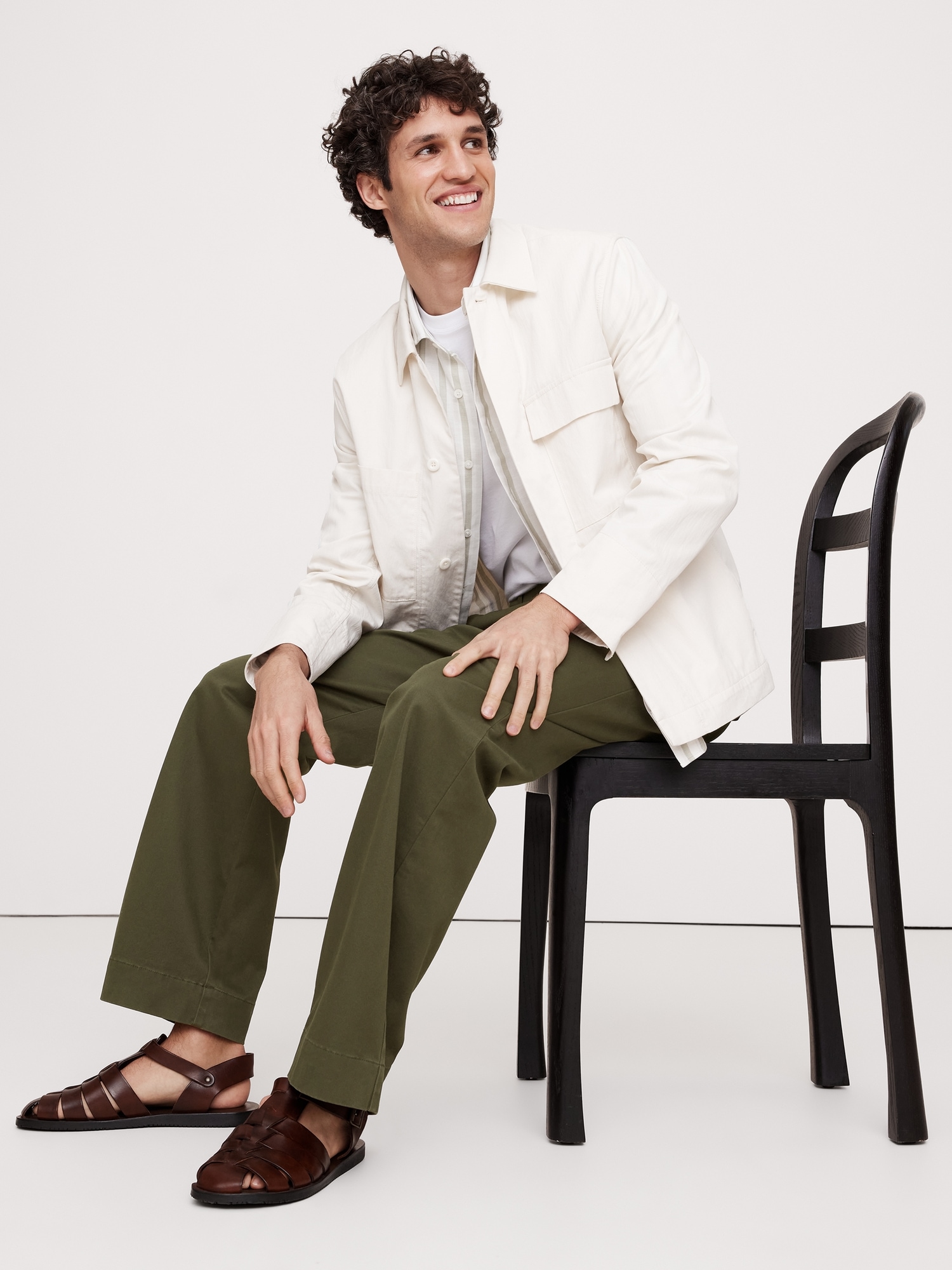 The sweet spot between dressed-up and at-ease, we cut this pair of chinos in our best-selling Stretch-Chino fabric—woven from organic cotton and finished a stone wash for a broken-in look and an already-loved feel. Here, the fit is relaxed, but never sloppy thanks to a truly straight leg and just-right inseam length.