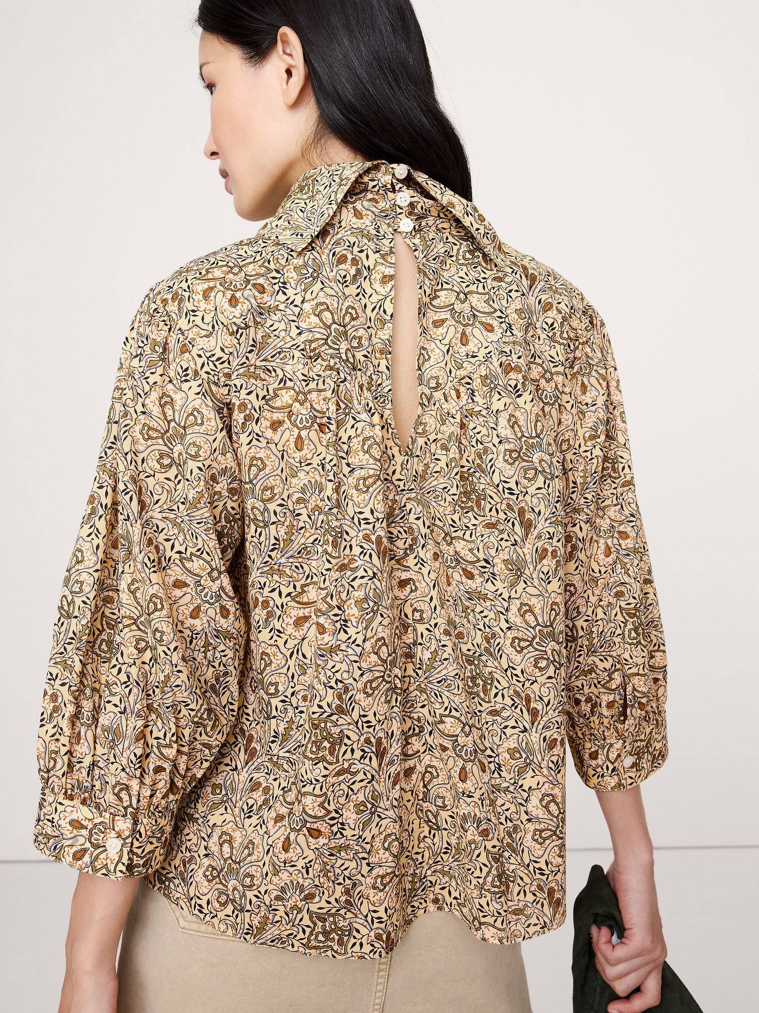 Deconstructed, reconstructed. We flipped the classic Western shirt back-to-front to give it a mock-neck silhouette. Here, in soft cotton lawn.