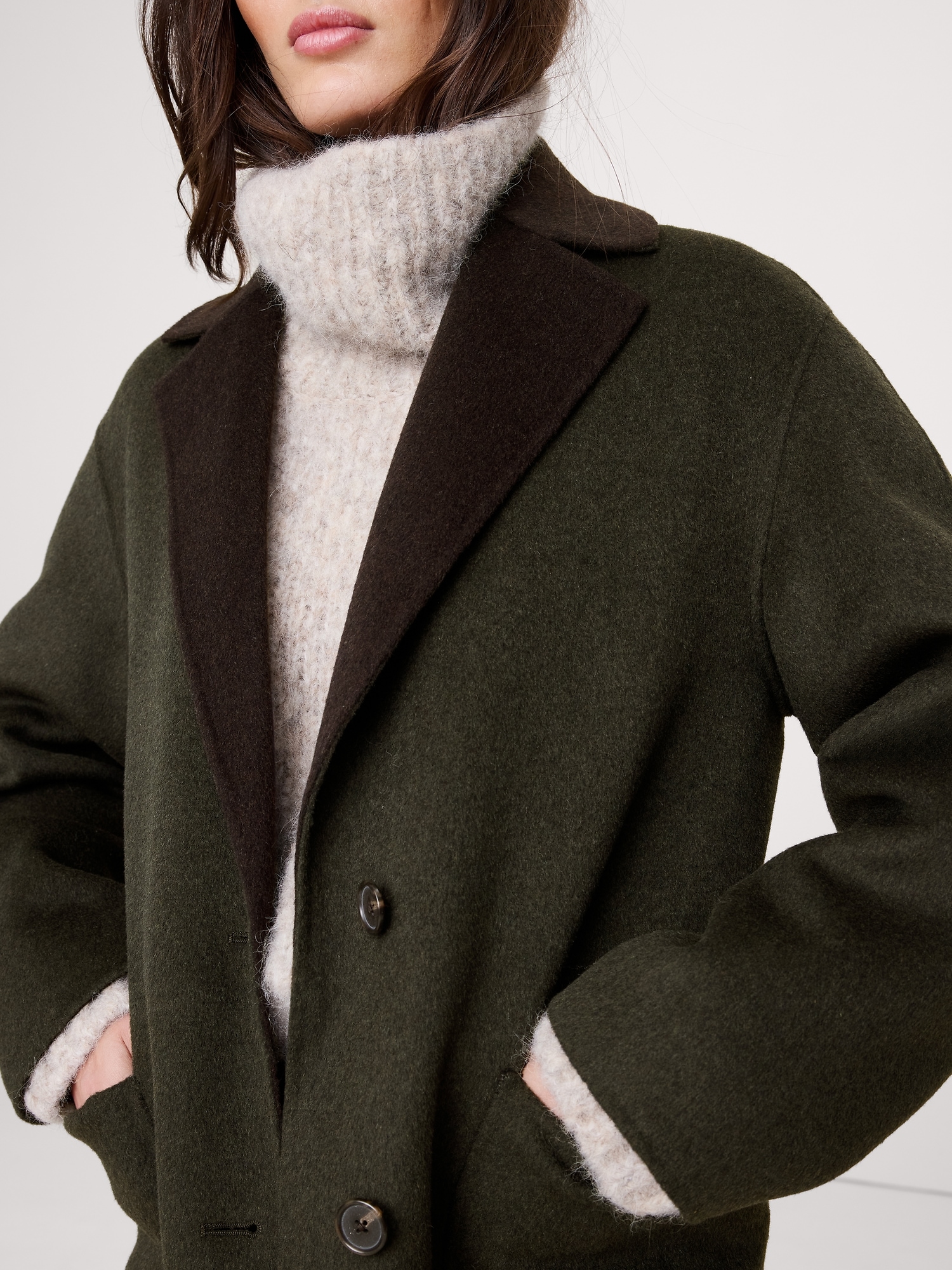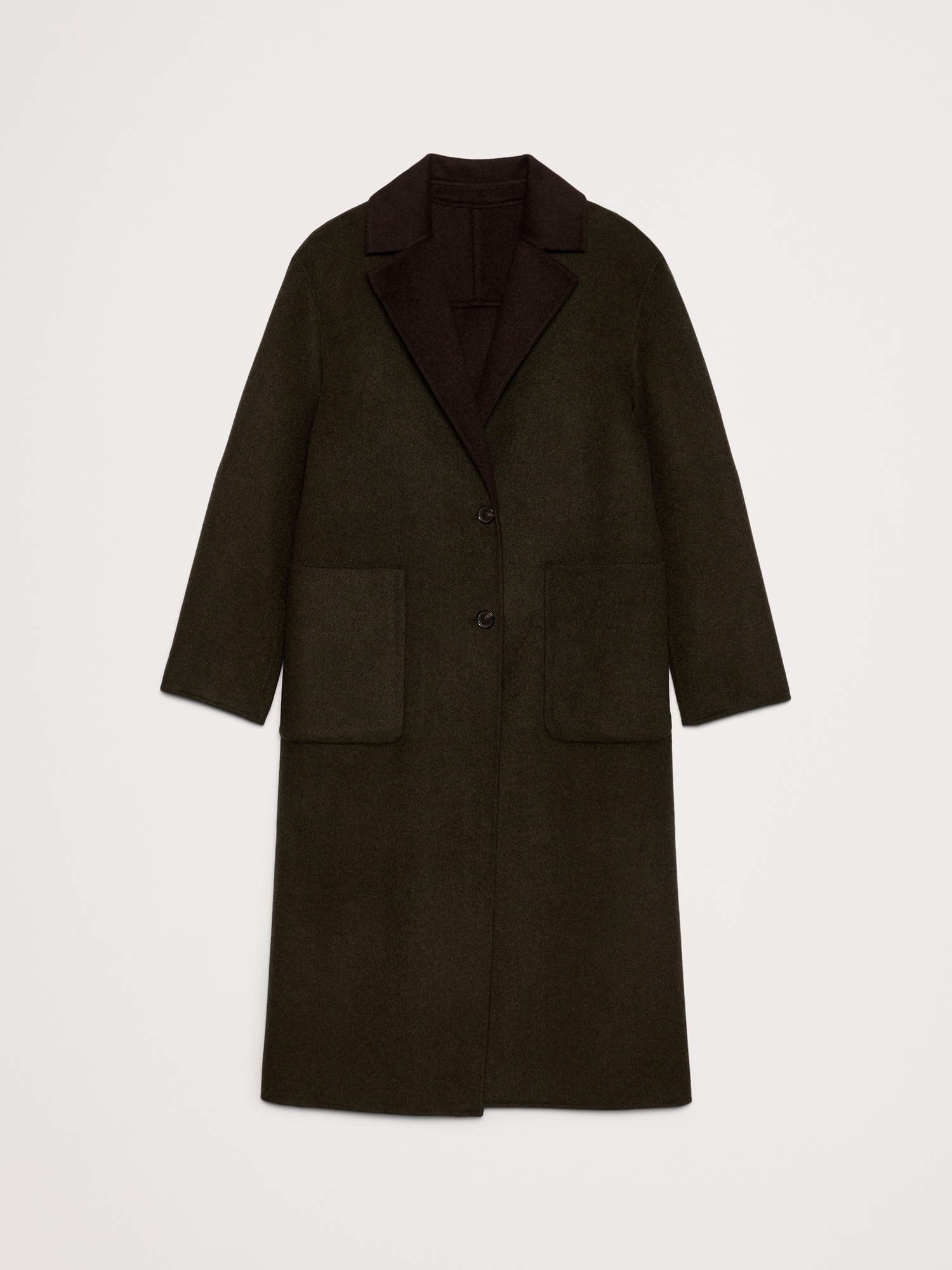 Designed to be layered, this double-breasted topcoat is crafted from our a reversible double-faced wool blend. We cut it with a relaxed fit for easy layering through the coldest months.