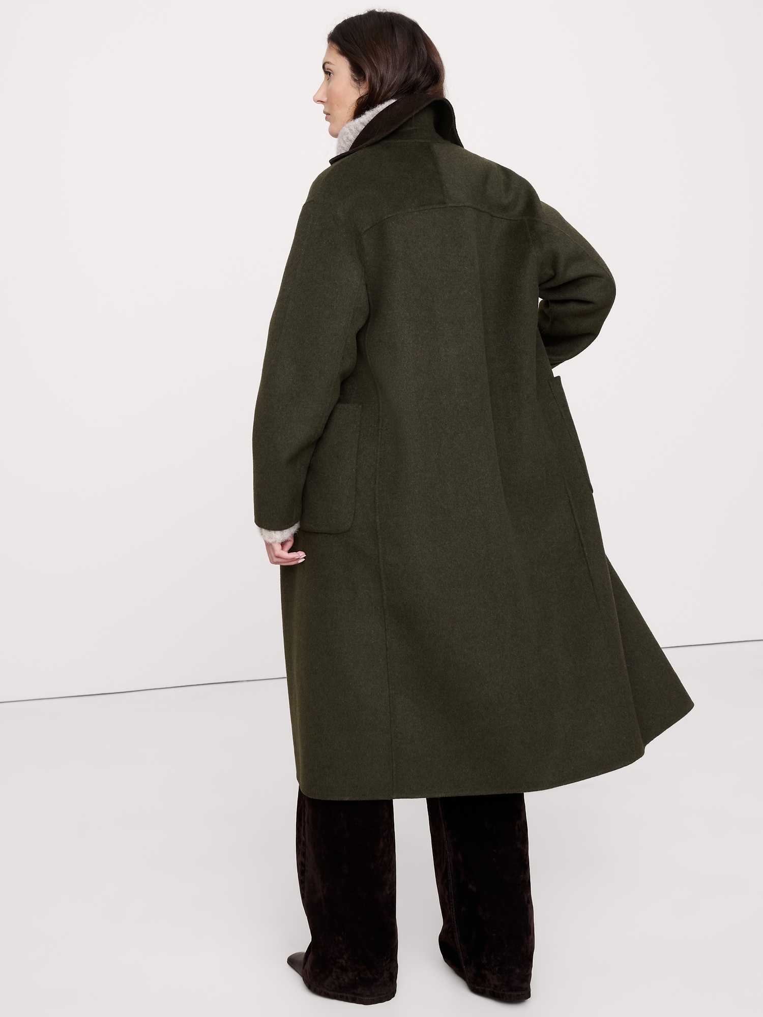 Designed to be layered, this double-breasted topcoat is crafted from our a reversible double-faced wool blend. We cut it with a relaxed fit for easy layering through the coldest months.