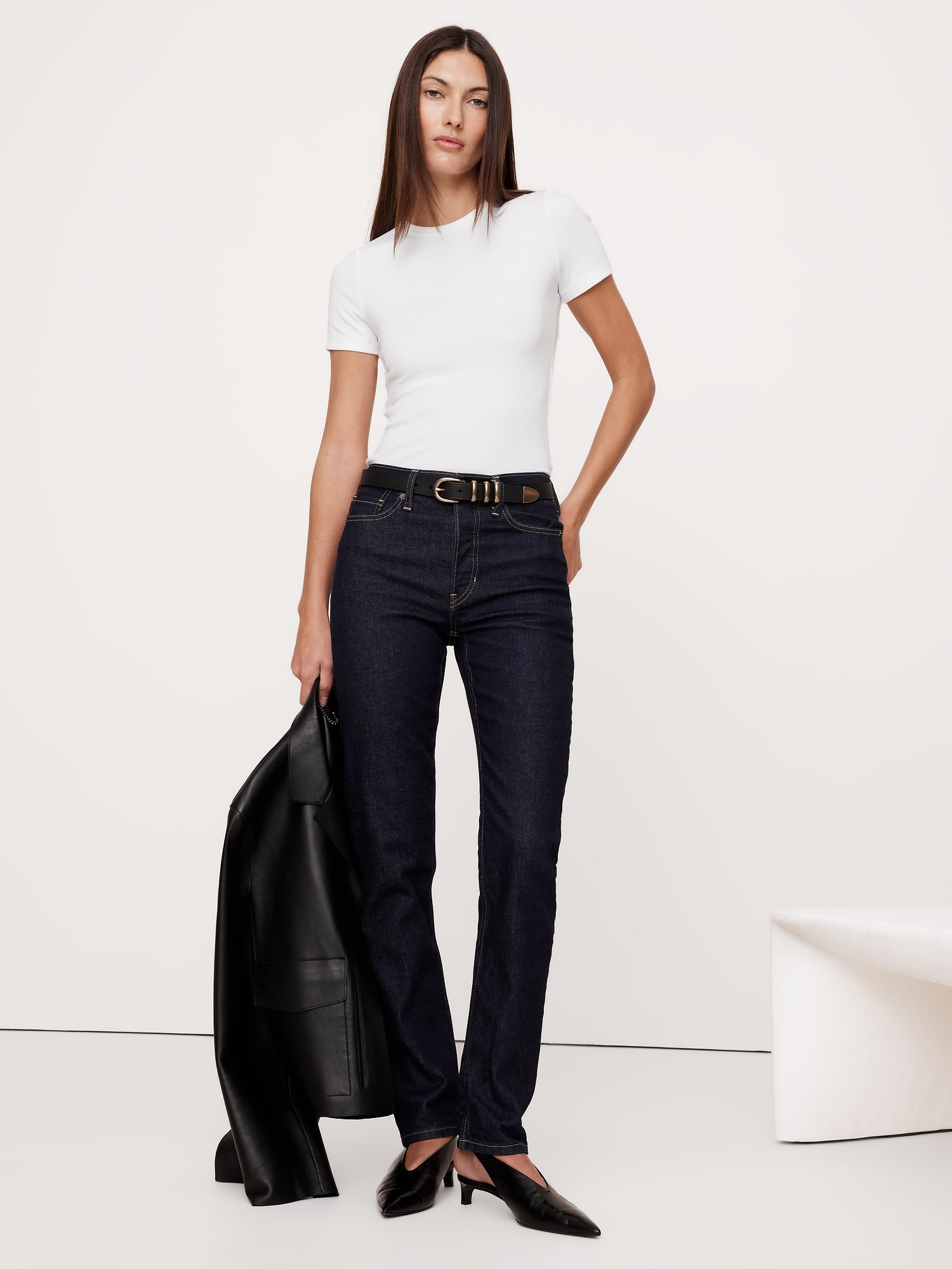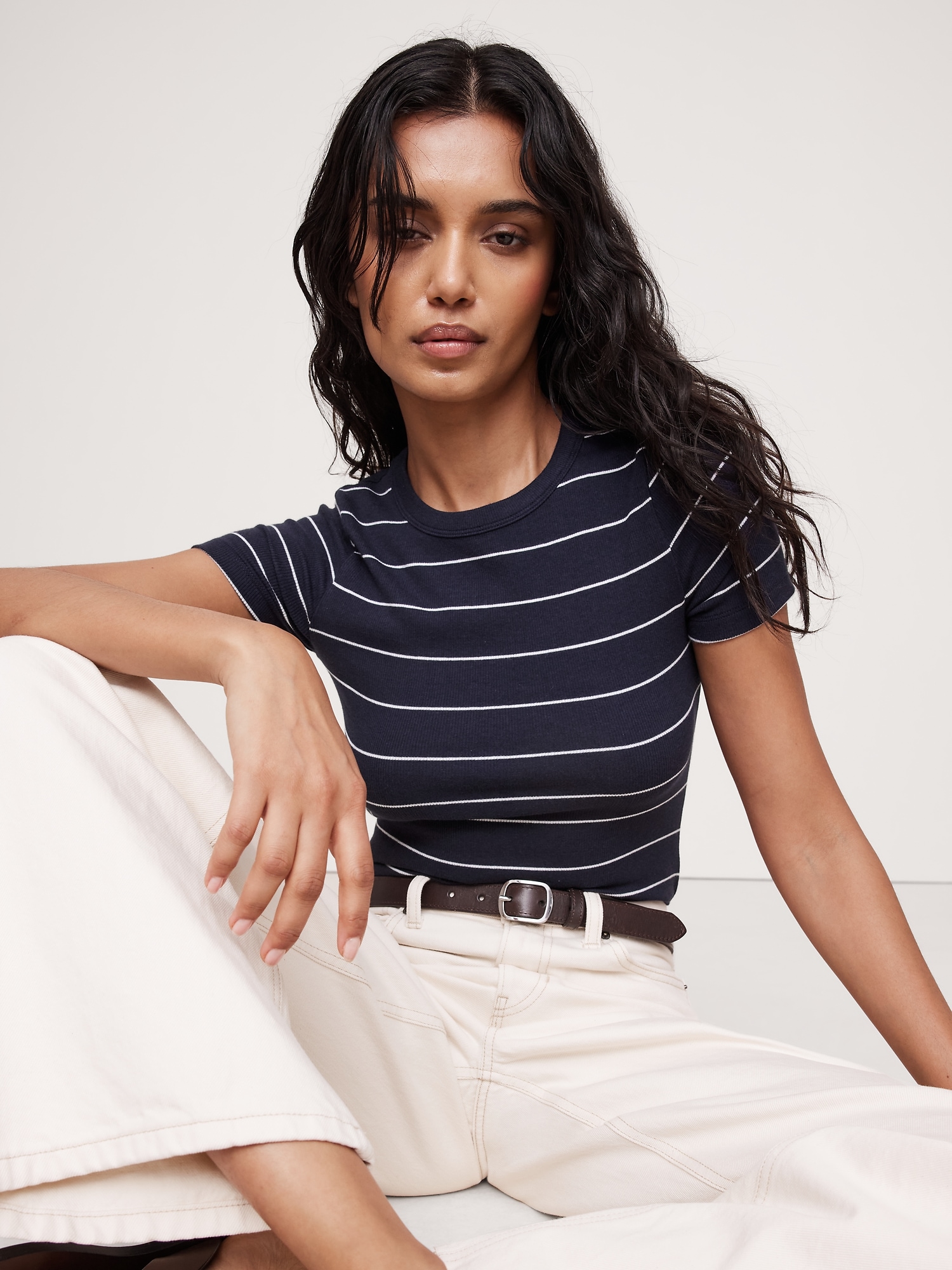 Our take on the baby-tee, cut from a soft and oh-so-stretchy ribbed knit.