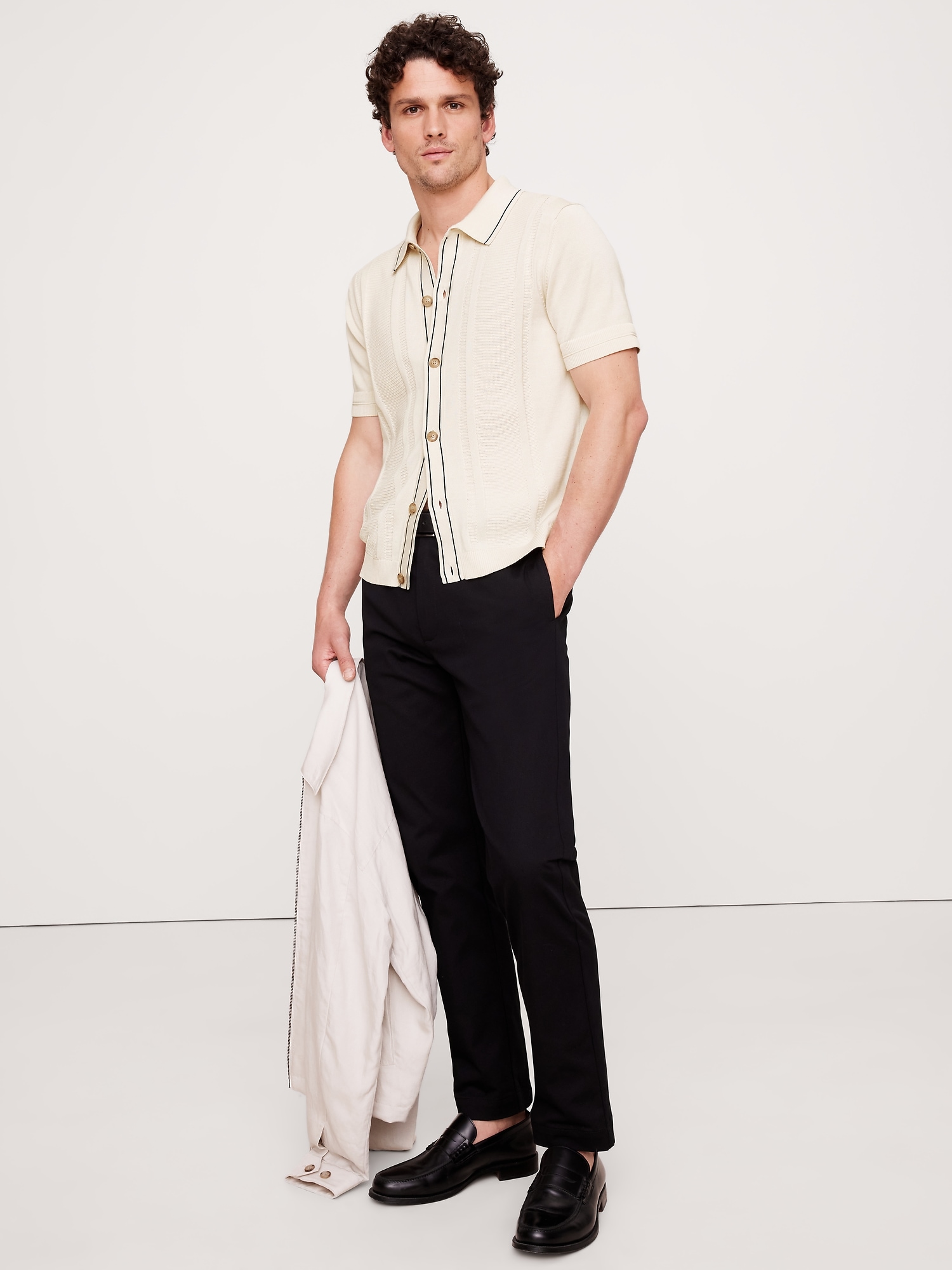 Resort shirt meets sweater polo. We combined the best of both using a variety of ribbed stitches in our 100% certified-organic yarn (so it’s ultra soft).