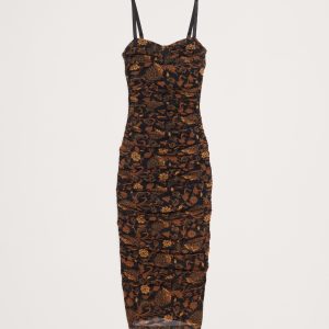 Ruched Mesh Corset Midi Dress