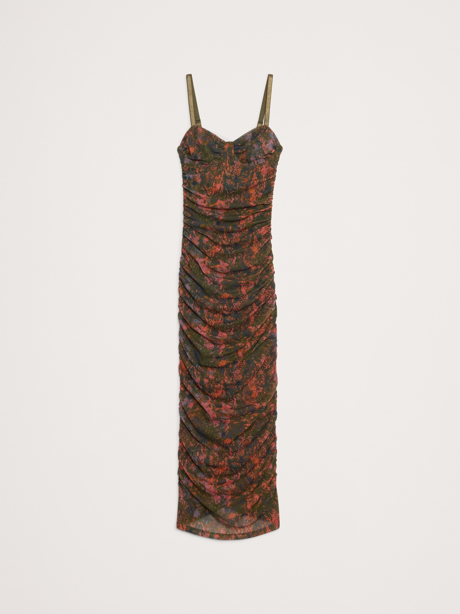 Hard to forget. This slinky midi dress has a corset-inspired bodice and allover ruching, cut in our stretch-mesh for a delightful, next-to-skin feel. Sheath Fit: Sits close to the body with a straight skirt. Sweetheart neckline. Invisible zip at back. Lined to mini-length. #817714