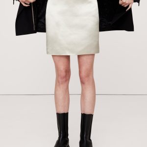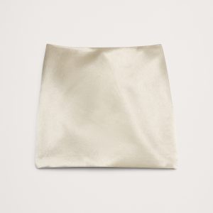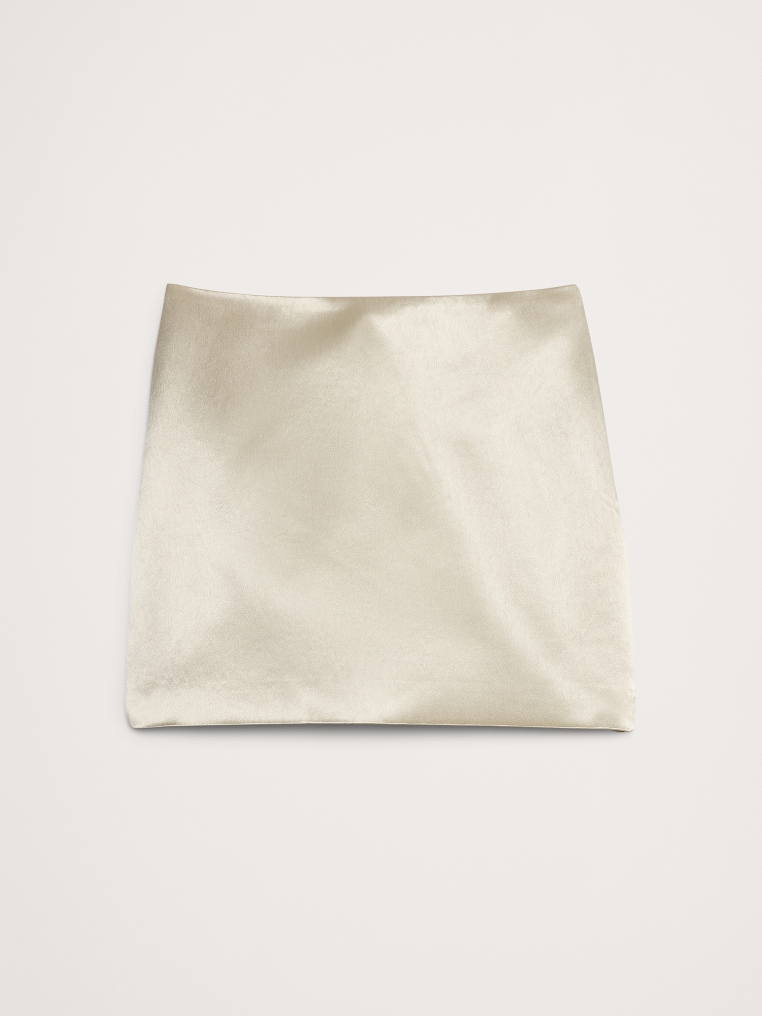 We cut this elegantly understated mini skirt from a high-shine satin, keeping the silhouette free from ornament so it’s the perfect blank canvas.