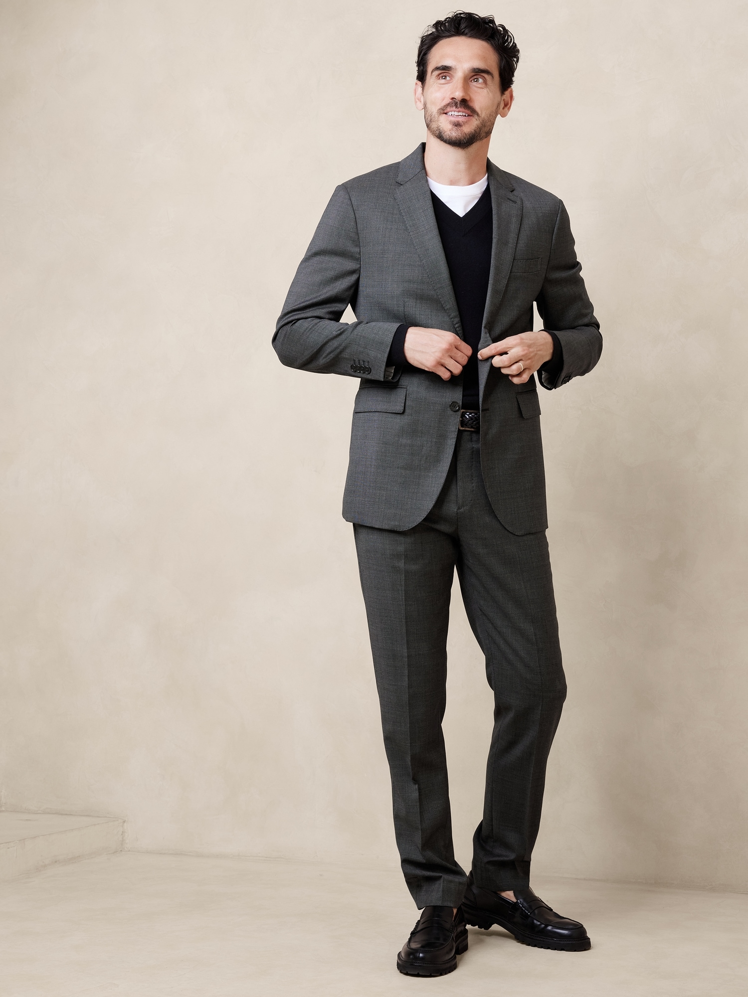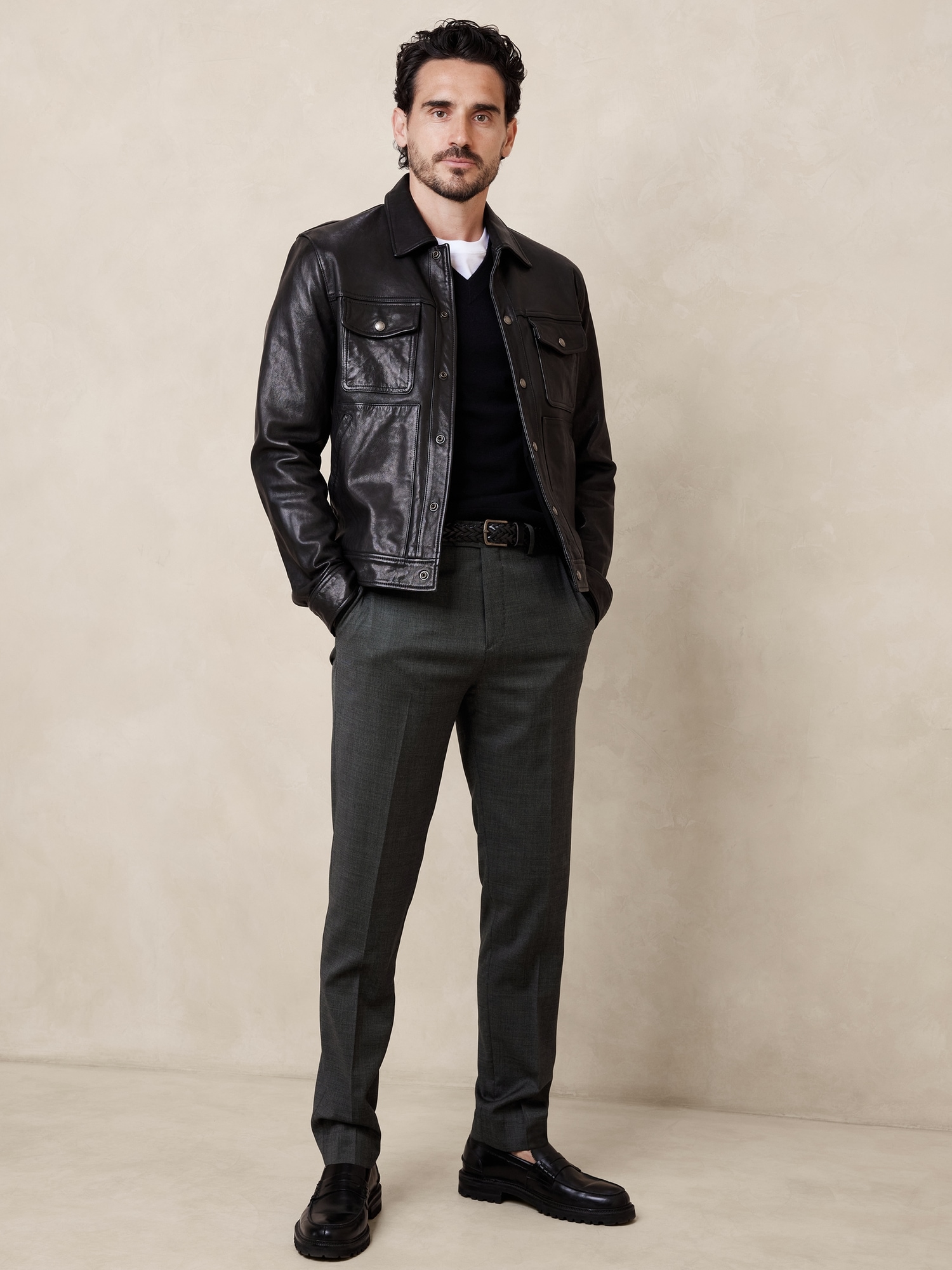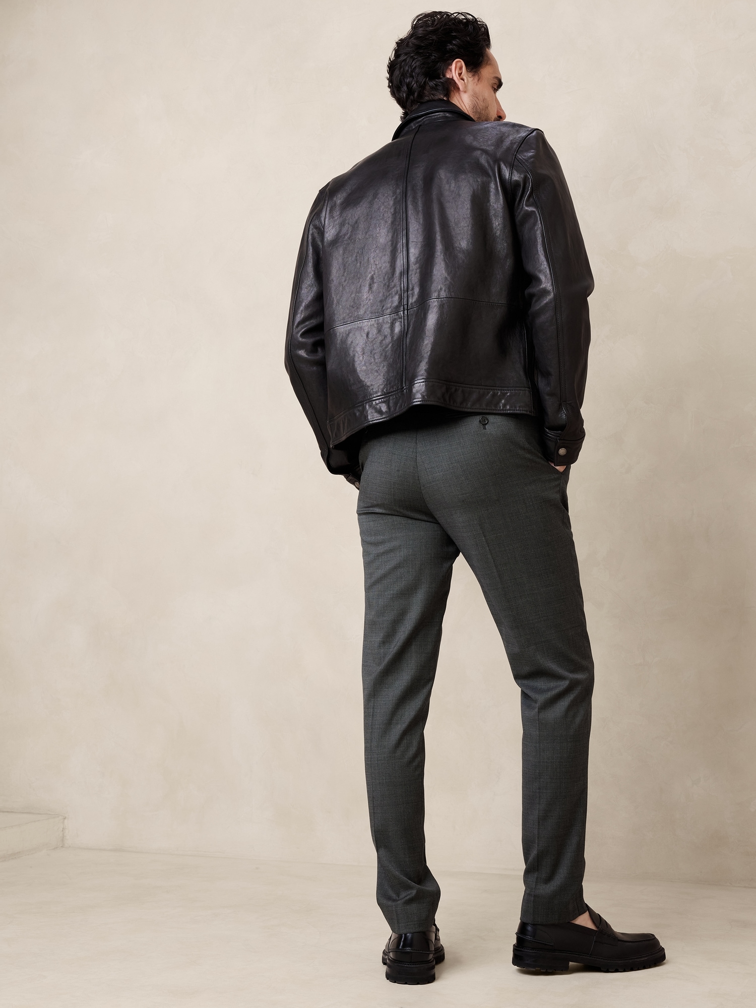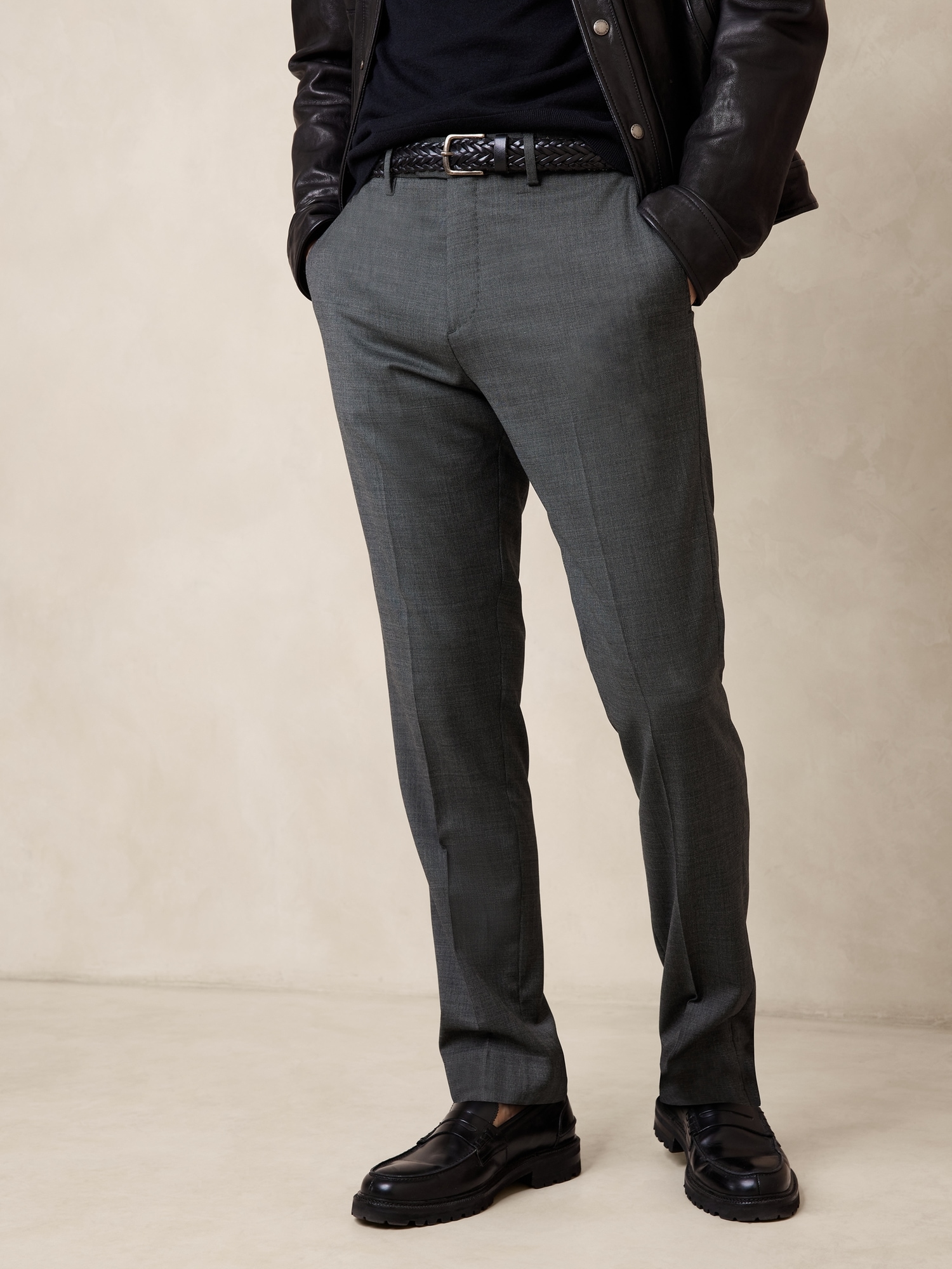 Legendary workwear. Three years of research went into perfecting the fit for these tapered pants, crafted here in a luxurious wool fabric in a nailhead texture from Italy’s renowned Reda Mill. With enhanced stretch for movement and comfort, you’ll reach for them over and over for seasons to come. Breathable, StretchSLIM FIT: Undeniably modern, our designers spent 3 years working to refine the fit of this cut, with a tapered fit through the leg, and distinctive break at the hem.