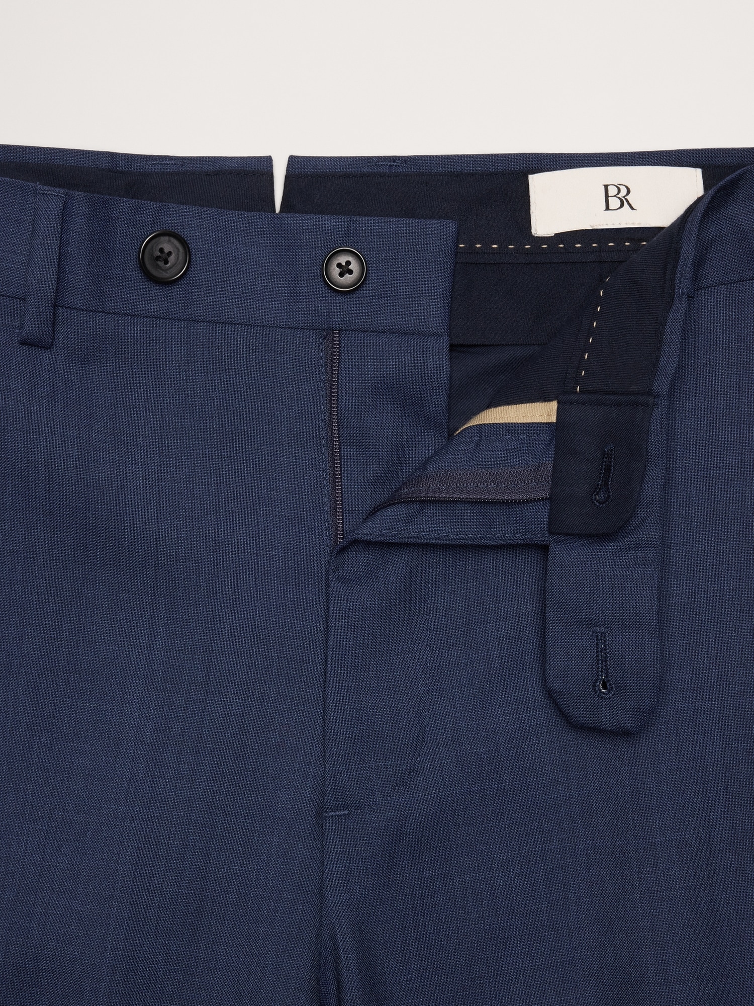 This sophisticated Italian wool suit pant stands up to warm weather with a luxurious tropical wool fabric—a fabric beloved for its distinctive balance between an open weave and a tighter tension yarn, which gives it the ability to remain breathable while always looking pulled-together. Wrinkle-ResistantSlim Fit: Mid-rise. Tapered slim leg.