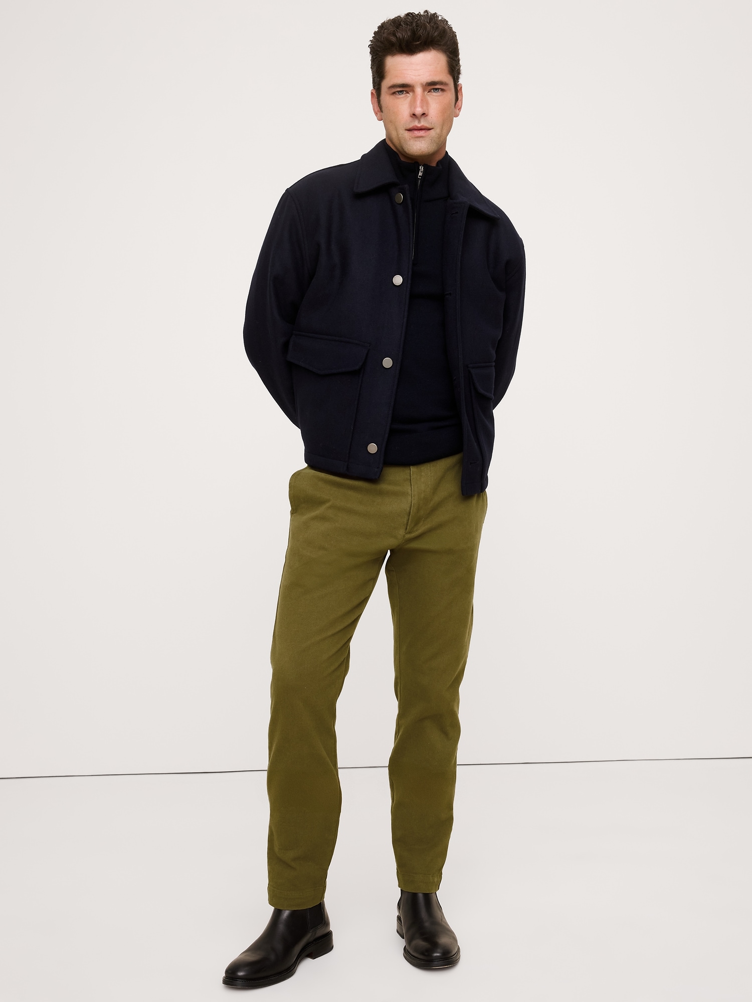 A seasonal favorite, our best-selling Brushed Traveler Chino returns, crafted in an Italian moleskin fabric selected for its flannel-like softness and incredible stretch.