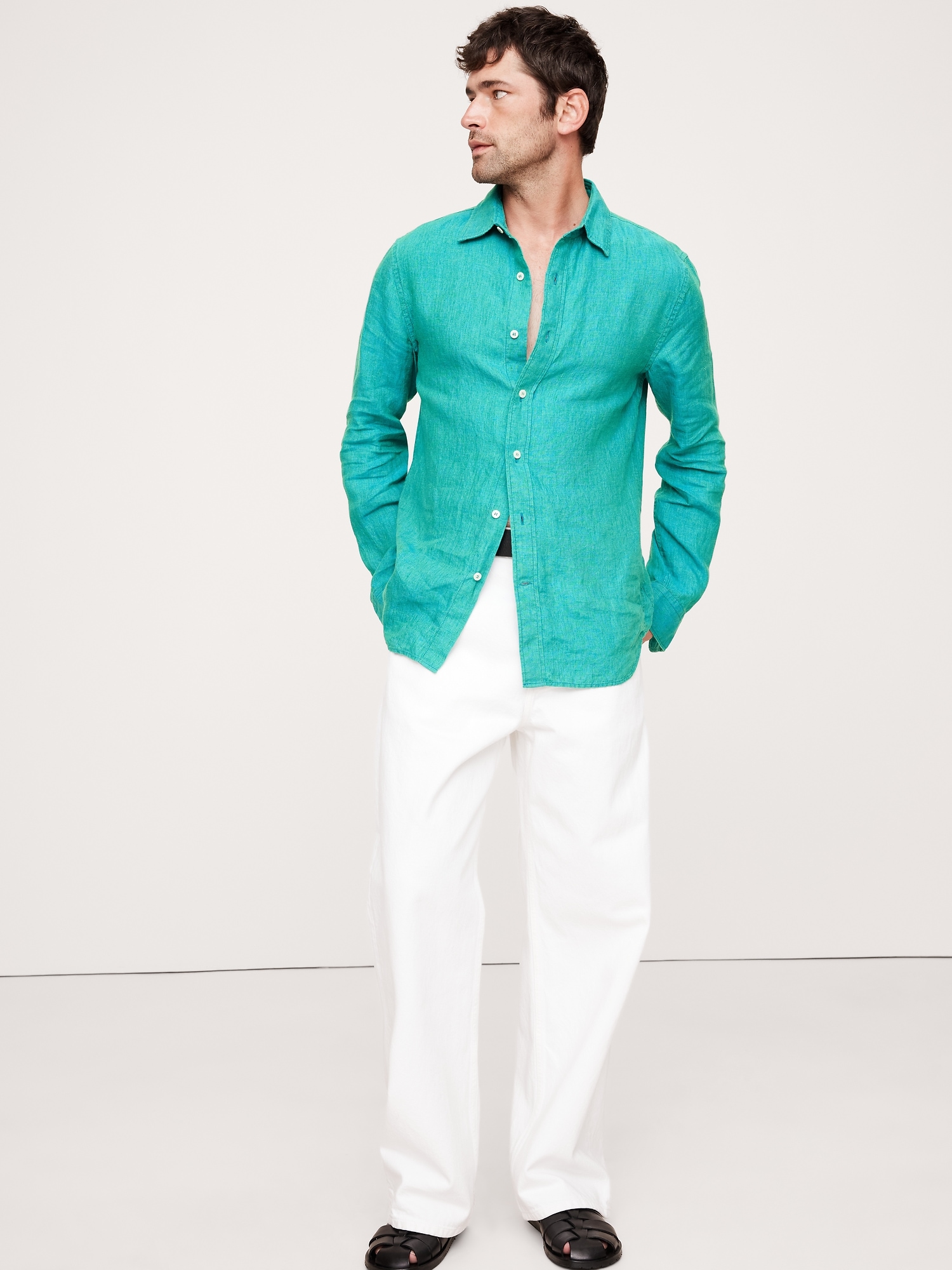 Made from 100% certified-European linen, just the way we like it. We kept the silhouette of this long-sleeve shirt easy and opted for a classic point collar.