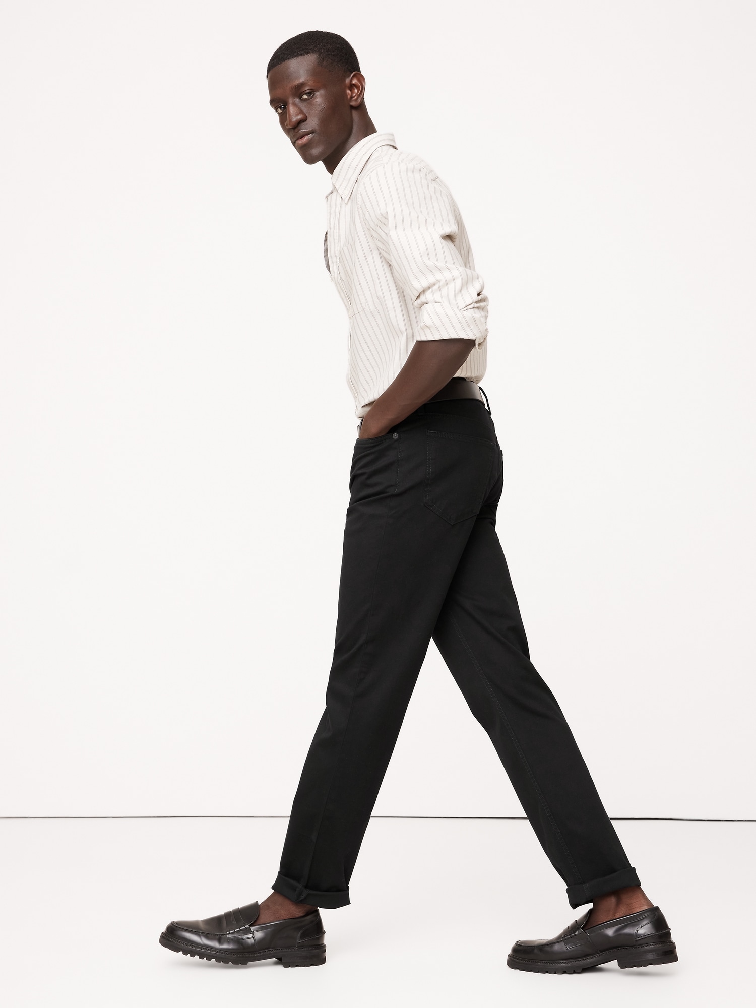 Five-pocket styling.