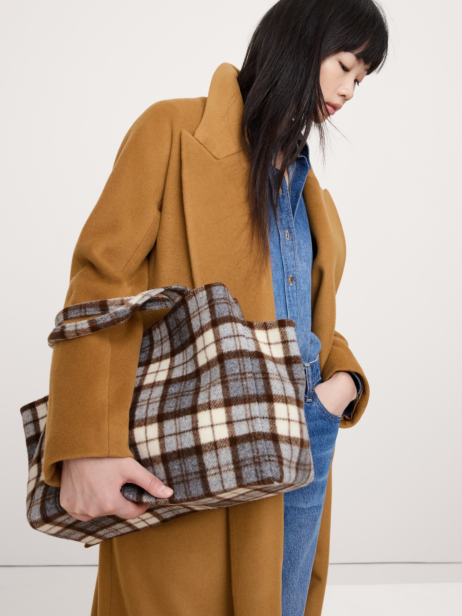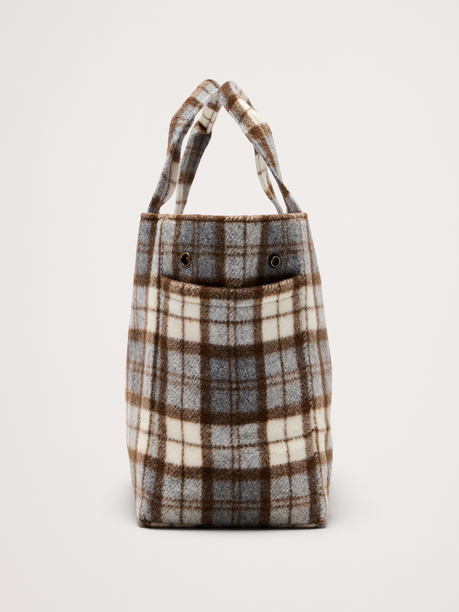 A Hat Attack original, perfectly sized for everyday errands, in a cold-weather ready plaid fabric.