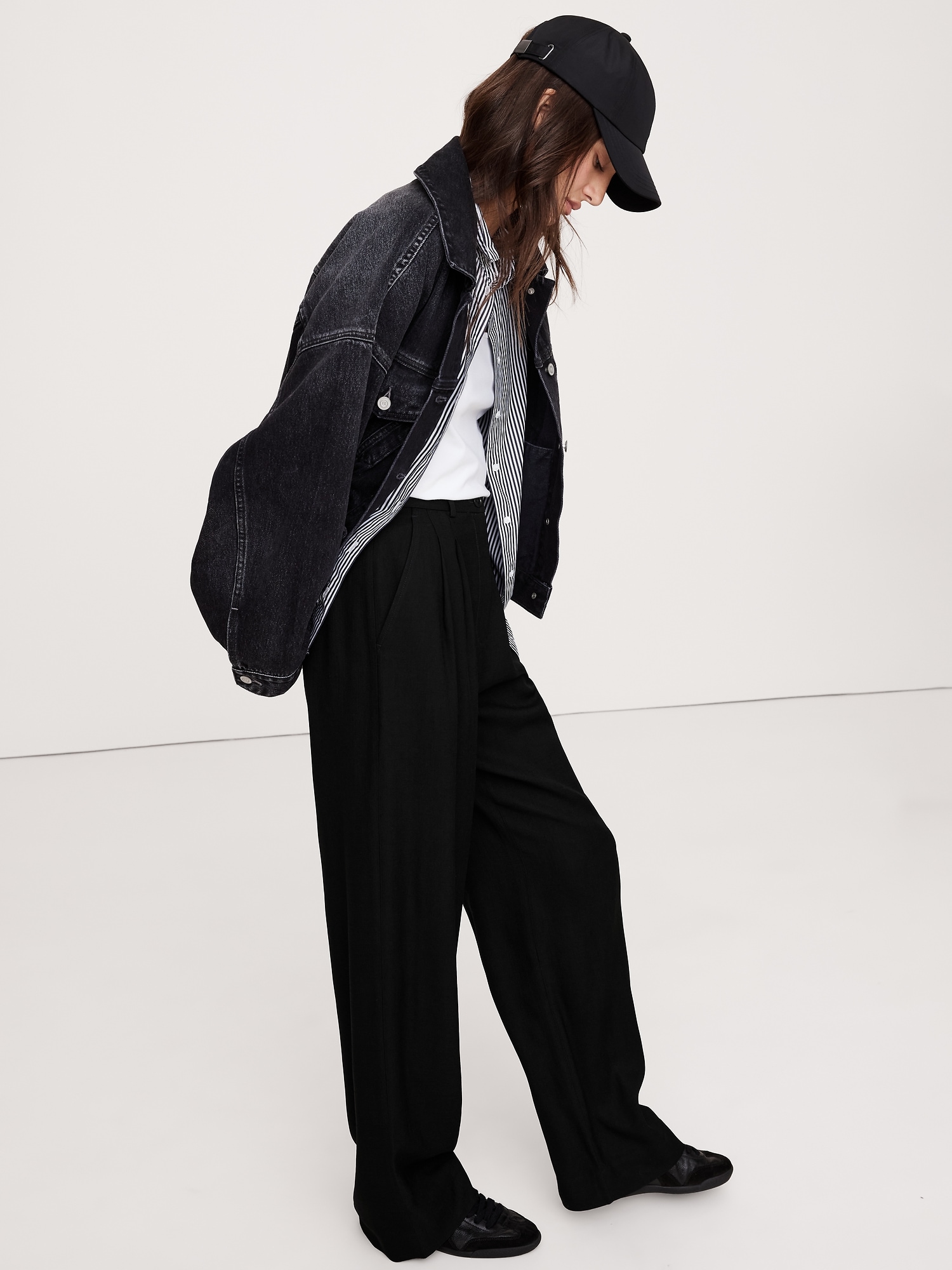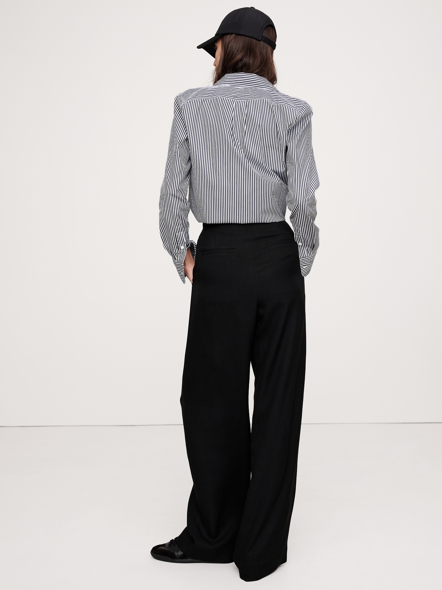 Meet the high-rise pants we can’t stop wearing. We cut these wide-leg pants with a double-pleated front from our premium drapey twill—a fabric we love because it strikes the perfect balance between tailored and casual-cool.