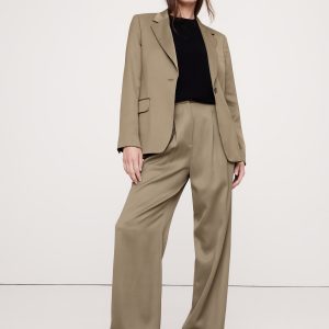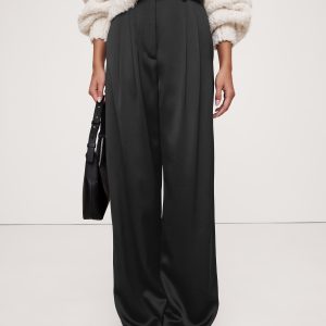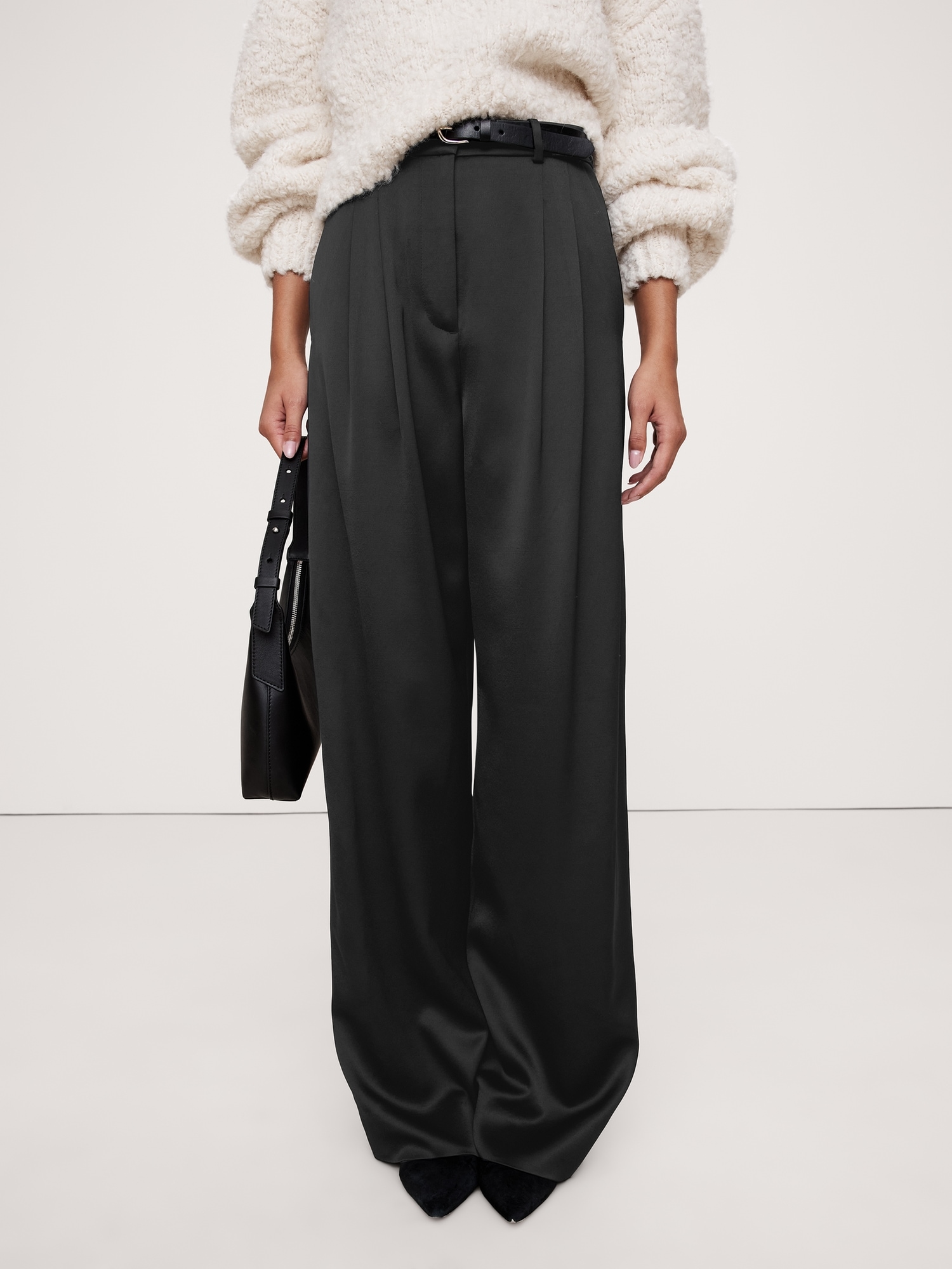 Meet the high-rise pants we can’t stop wearing. We cut these wide-leg pants with a double-pleated front for a borrowed-from-the-boys vibe. For fabric, our design team selected an Italian satin that strikes the perfect balance between tailored and feminine.