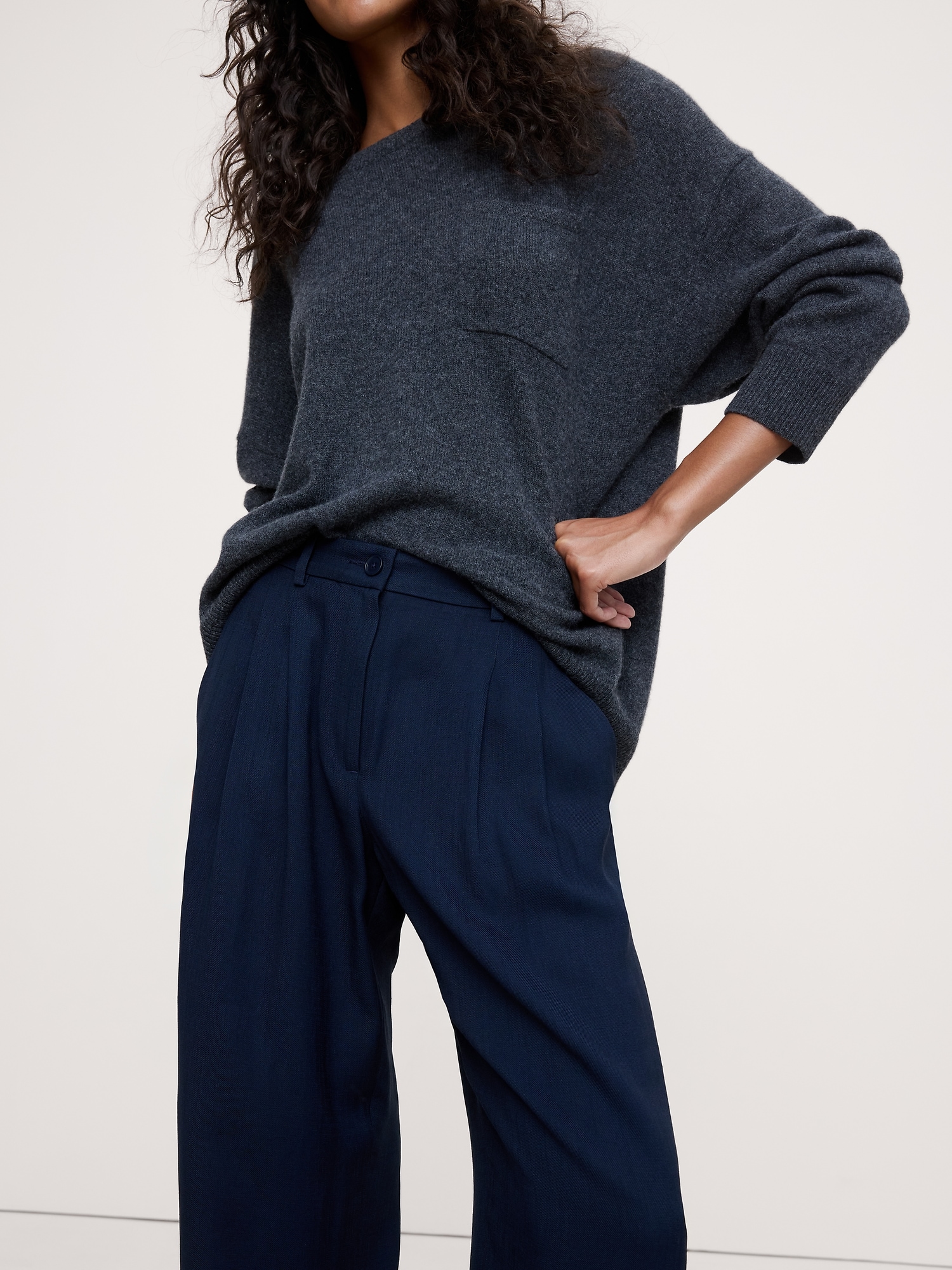 Meet the mid-rise pants we can’t stop wearing. We cut these wide-leg pants with a double-pleated in our premium drapey twill—a fabric we love because it strikes the perfect balance between tailored and casual-cool. Mid rise (9.5