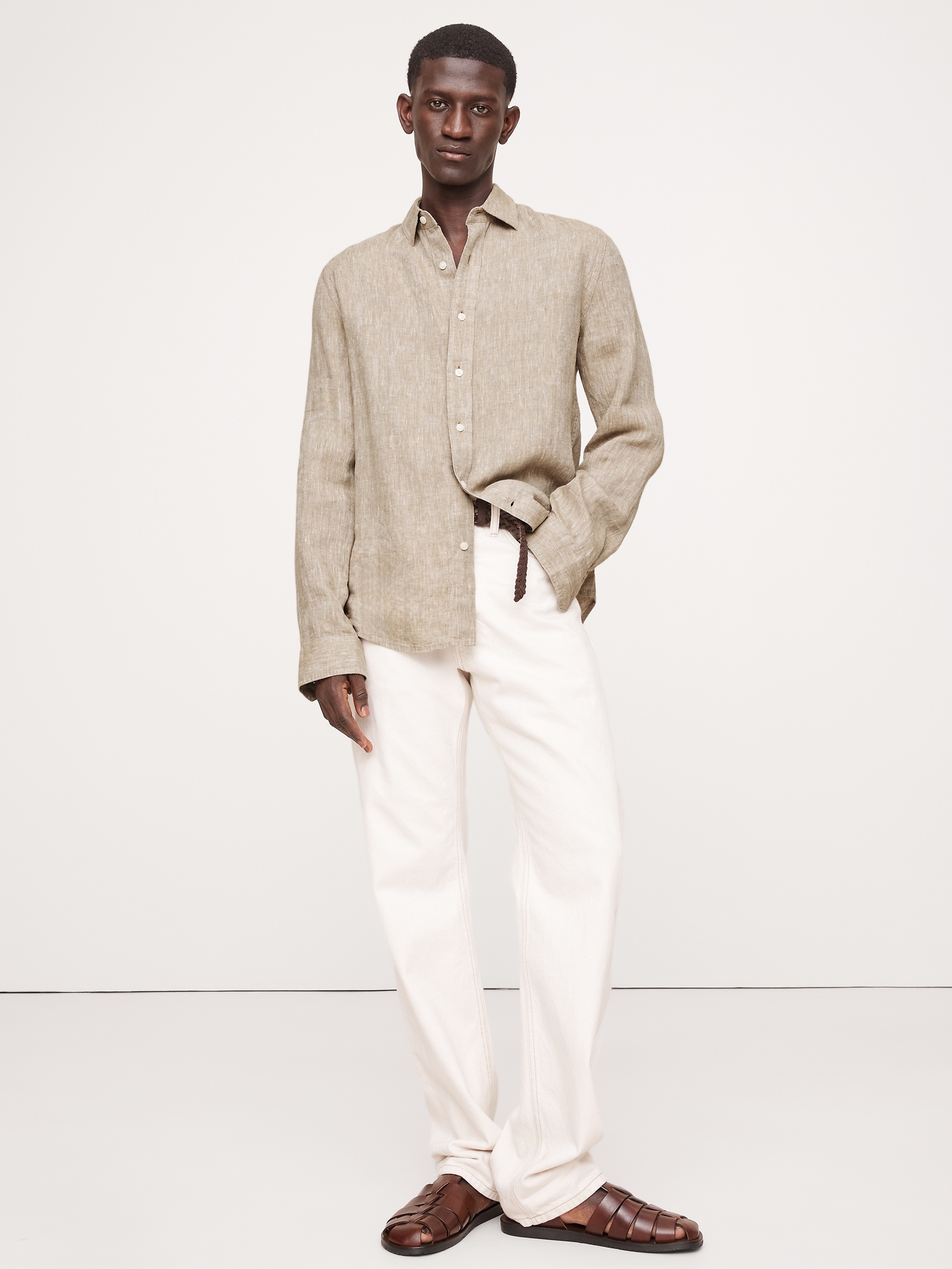 Made from 100% certified-European linen, just the way we like it. We kept the silhouette of this long-sleeve shirt easy and opted for a classic point collar.