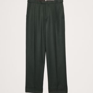 Straight Green Twill Suit Pant
