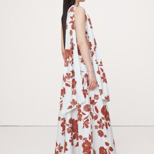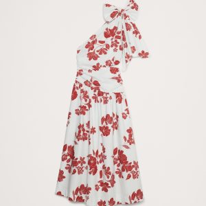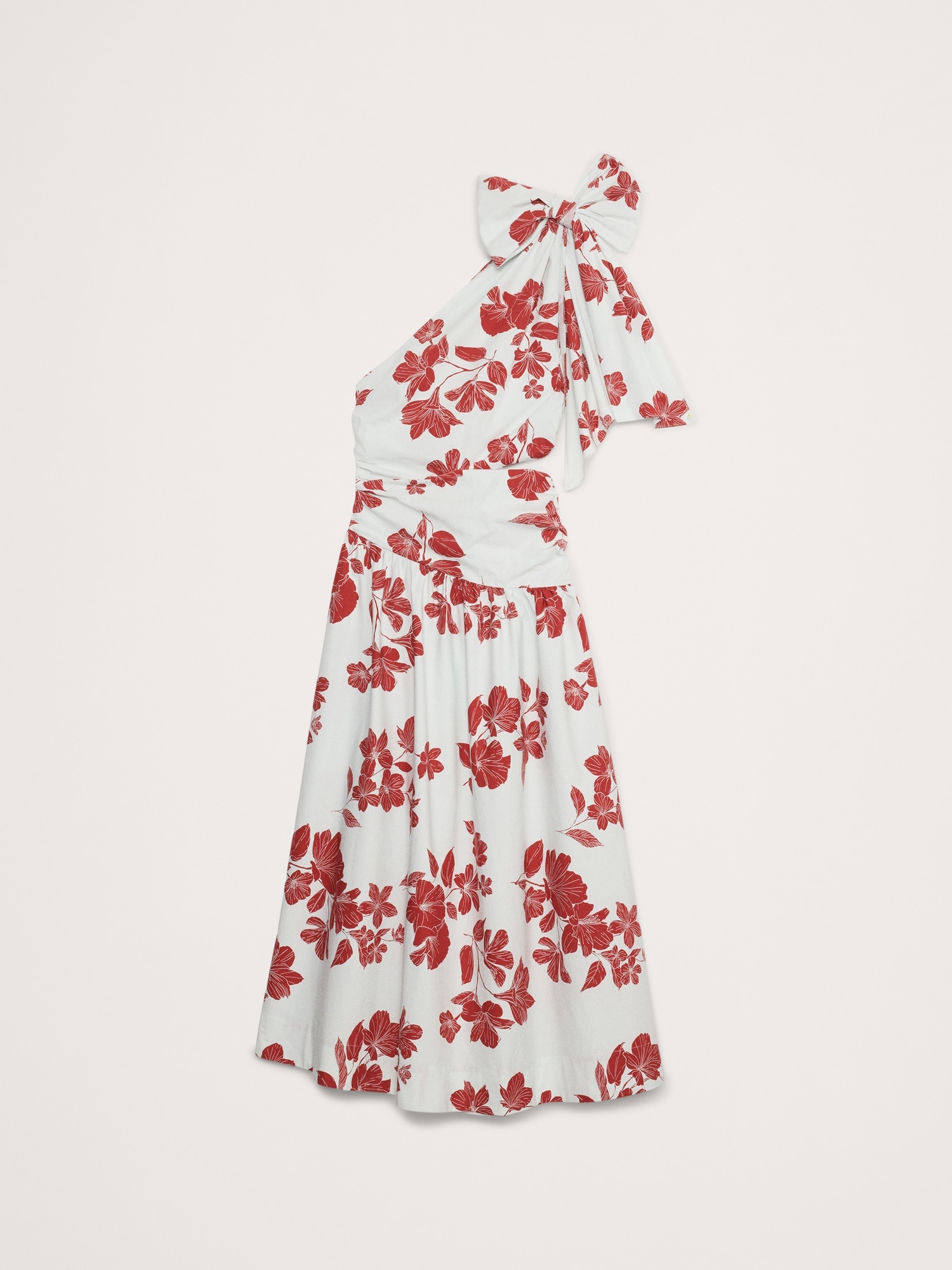 Stretch-Cotton Poplin One-Shoulder Drop-Waist Maxi Dress