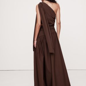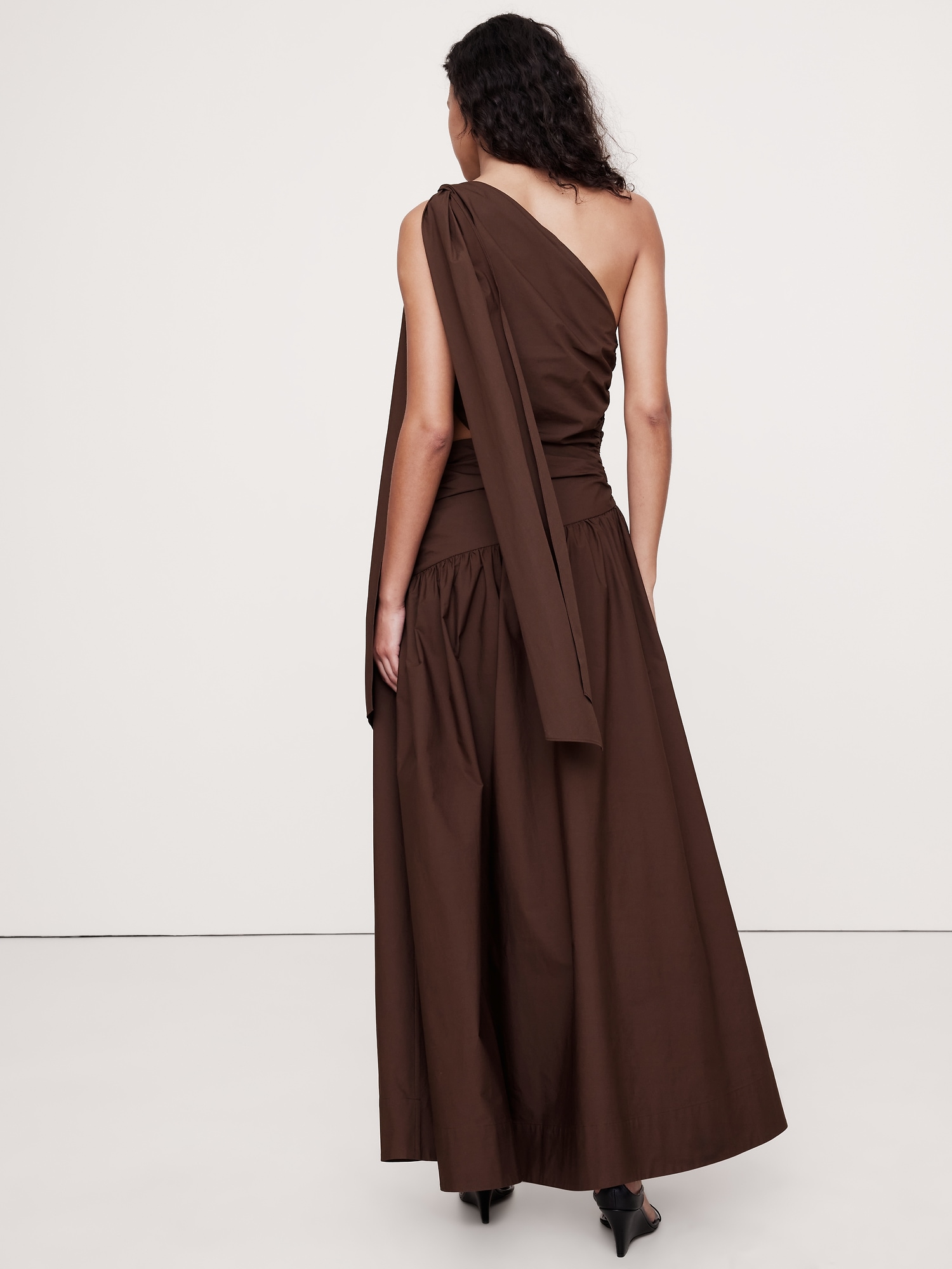 Stretch-Cotton Poplin One-Shoulder Drop-Waist Maxi Dress